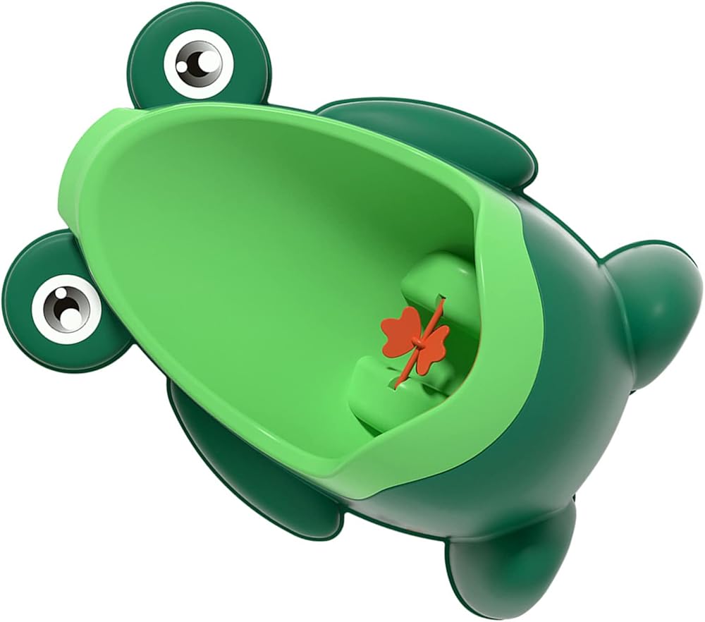 Cartoon Shape: The urinal with eye catching design featuring cute cartoon animal characters to stimulate and excite young boys during potty training. The urinal is equipped with a removable splash guard that prevents urine spills from staining the floor.
