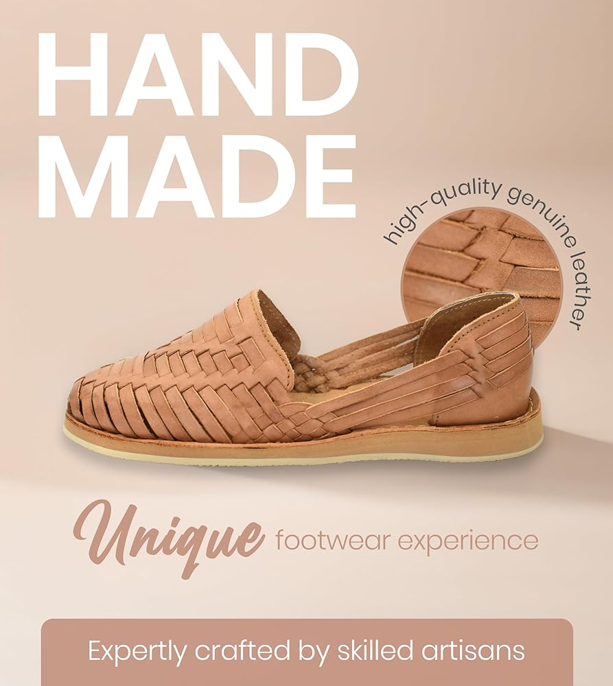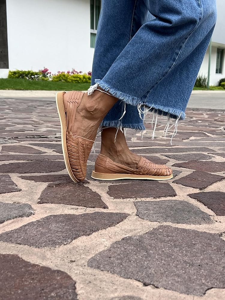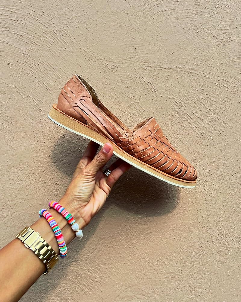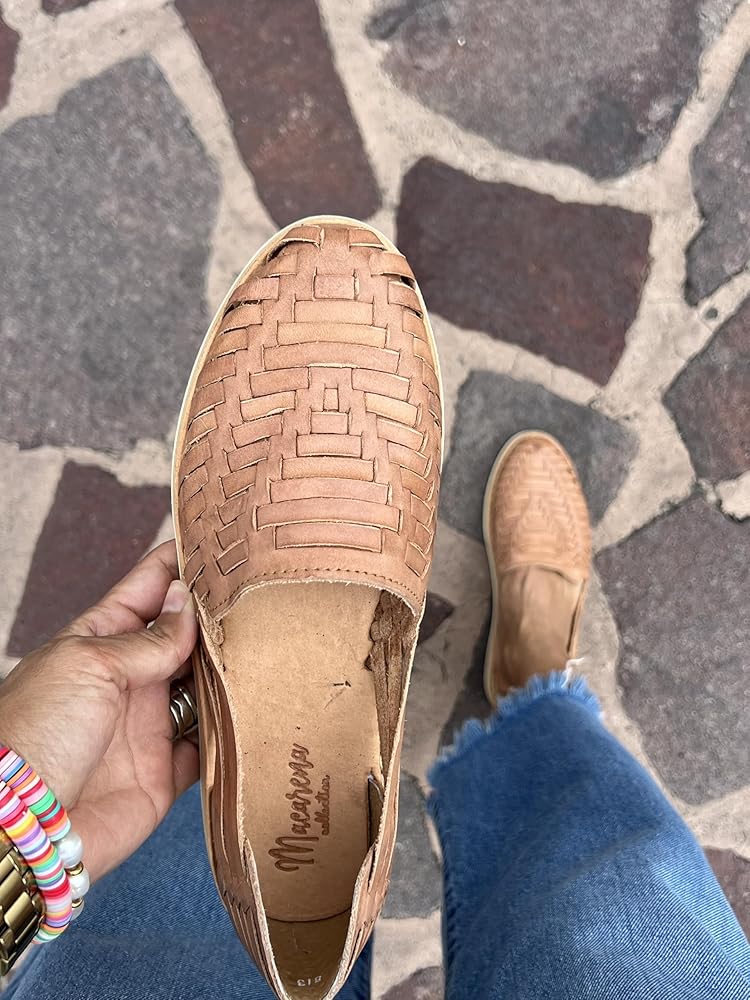 Experience the perfect blend of tradition and modern style with these handcrafted leather huarache loafers. Made by skilled artisans in Mexico, these shoes showcase the exquisite craftsmanship and attention to detail that define Mexican artisanry. Available in a variety of colors, including black, shedron, tan, pink, mint, and white, these loafers are designed to complement any outfit and provide all-day comfort. The woven leather design offers breathability and flexibility, making them ideal for both casual and formal occasions. Features: Material: 100% genuine leather Colors: Black, shedron, tan, pink, mint, white Design: Traditional huarache style with a modern slip-on loafer silhouette Handmade: Crafted by Mexican artisans Comfort: Lightweight and flexible sole for enhanced comfort Benefits: Durability: Made with high-quality leather for long-lasting wear Versatility: Suitable for a variety of occasions, from casual outings to formal events Ethically Made: Supports local artisans and preserves traditional craftsmanship Care Instructions: To maintain the quality and appearance of your shoes, clean with a soft, damp cloth and condition the leather regularly.