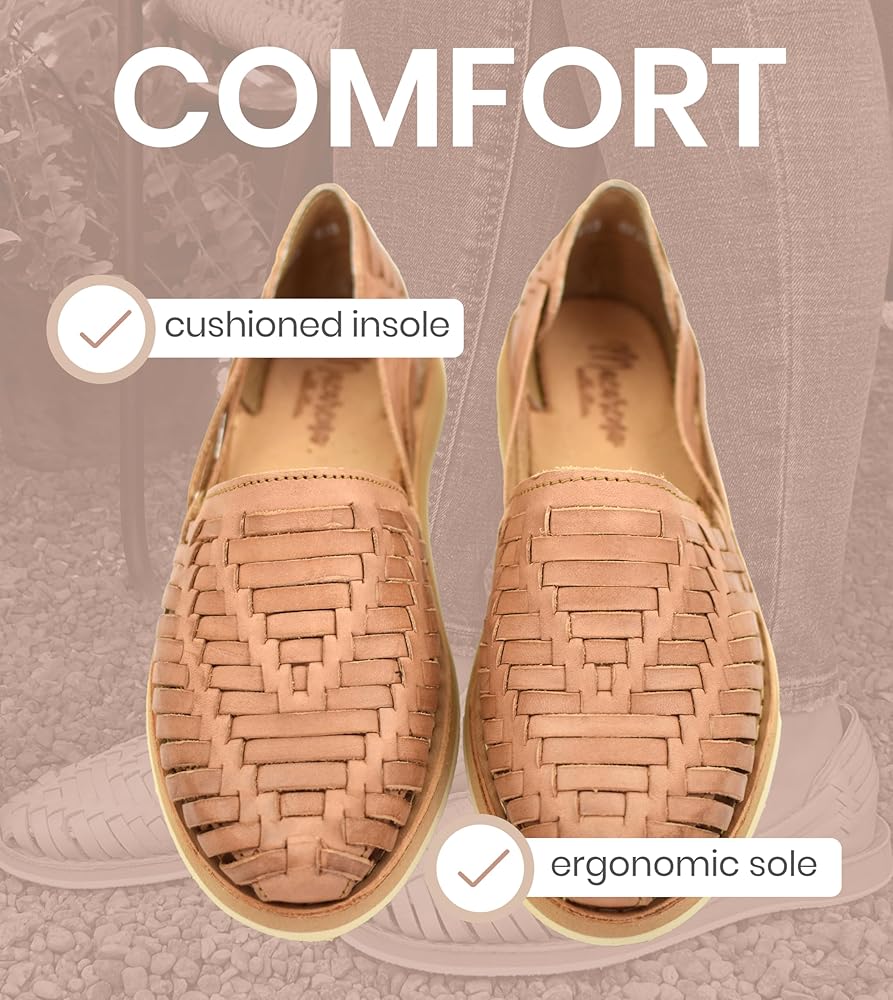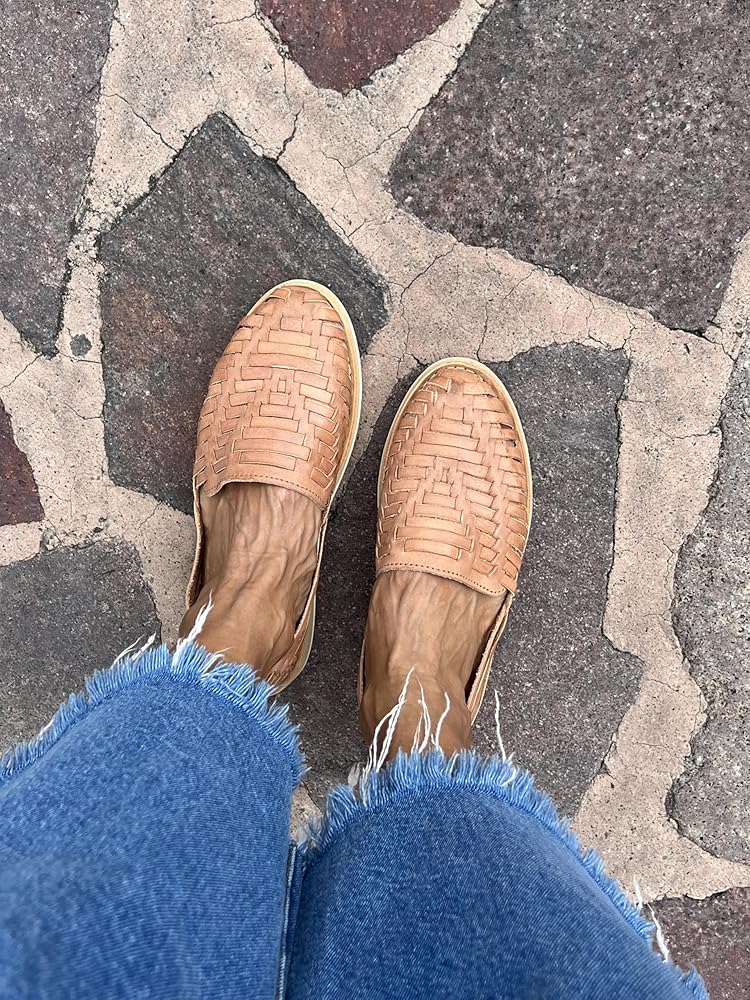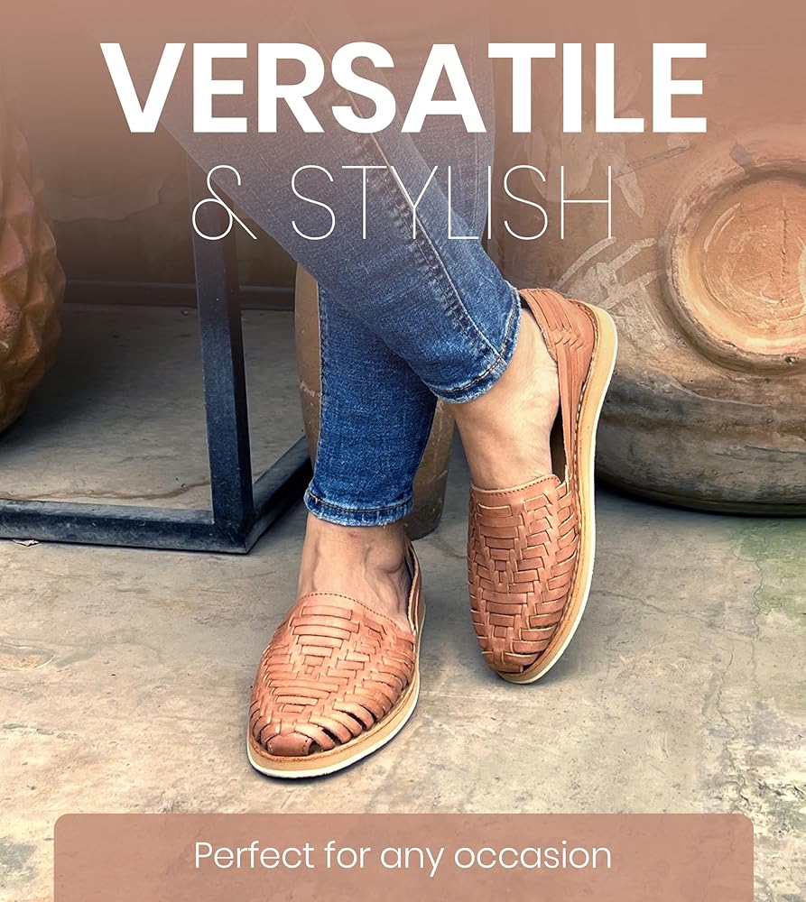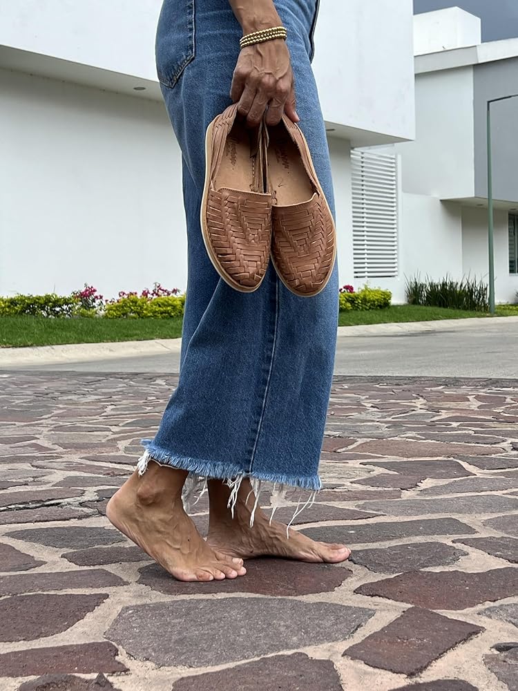 Experience the perfect blend of tradition and modern style with these handcrafted leather huarache loafers. Made by skilled artisans in Mexico, these shoes showcase the exquisite craftsmanship and attention to detail that define Mexican artisanry. Available in a variety of colors, including black, shedron, tan, pink, mint, and white, these loafers are designed to complement any outfit and provide all-day comfort. The woven leather design offers breathability and flexibility, making them ideal for both casual and formal occasions. Features: Material: 100% genuine leather Colors: Black, shedron, tan, pink, mint, white Design: Traditional huarache style with a modern slip-on loafer silhouette Handmade: Crafted by Mexican artisans Comfort: Lightweight and flexible sole for enhanced comfort Benefits: Durability: Made with high-quality leather for long-lasting wear Versatility: Suitable for a variety of occasions, from casual outings to formal events Ethically Made: Supports local artisans and preserves traditional craftsmanship Care Instructions: To maintain the quality and appearance of your shoes, clean with a soft, damp cloth and condition the leather regularly.