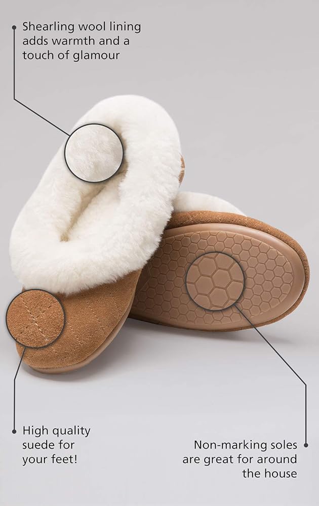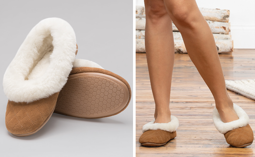 شبشب فائق النعومة والدفء - مصنوع من جلد سويدي ناعم وملمس من الخارج مع صوف مقصوص مريح رائع من الداخل للحصول على الدفء والتوسيد المثاليين.