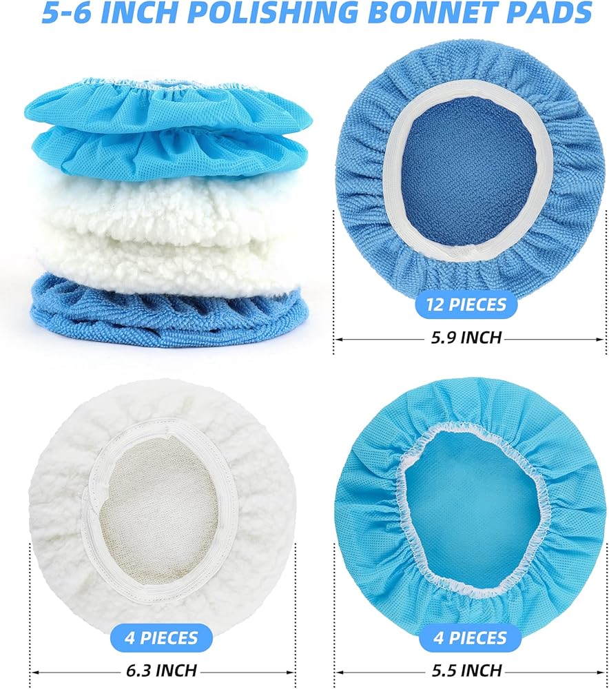 Packaging: Package includes 12 microfiber polishing caps, 4 wax coated polishing caps, and 4 wool wool polishing caps