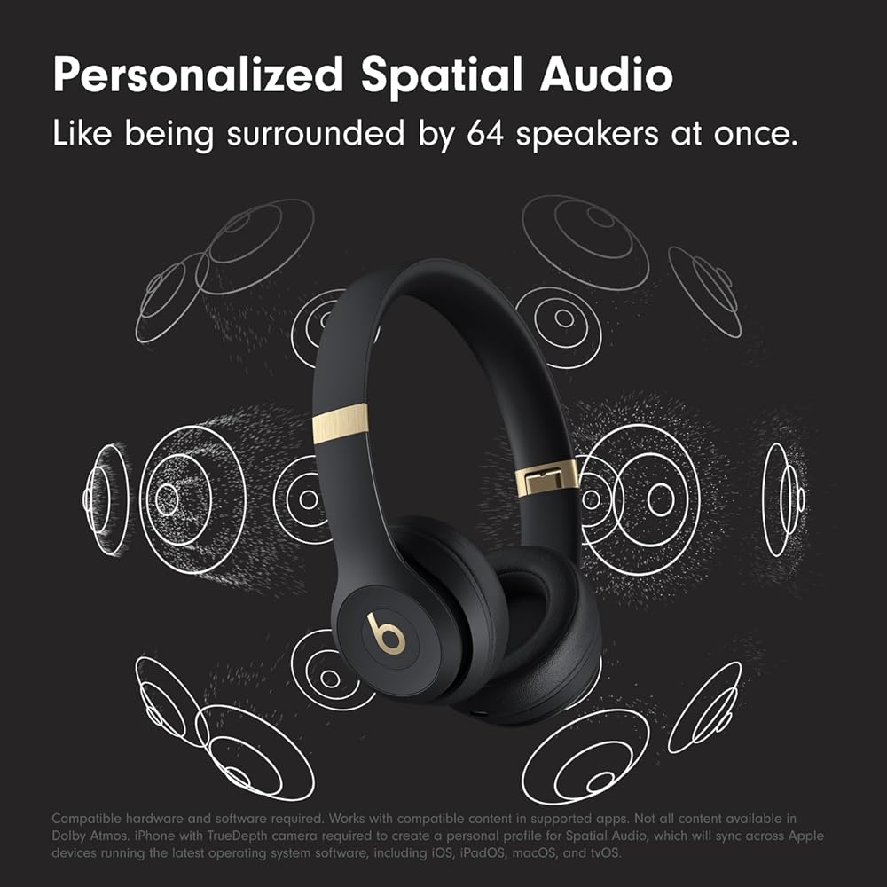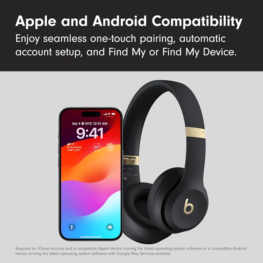 بيتس سولو 4 - سماعات رأس بلوتوث لاسلكية، متوافقة مع أبل وأندرويد، عمر بطارية يصل إلى 50 ساعة - أسود وذهبي