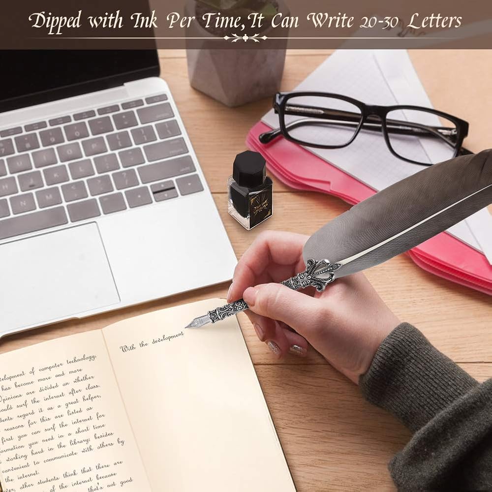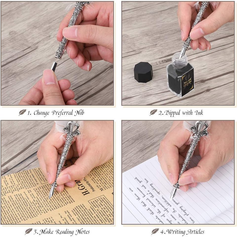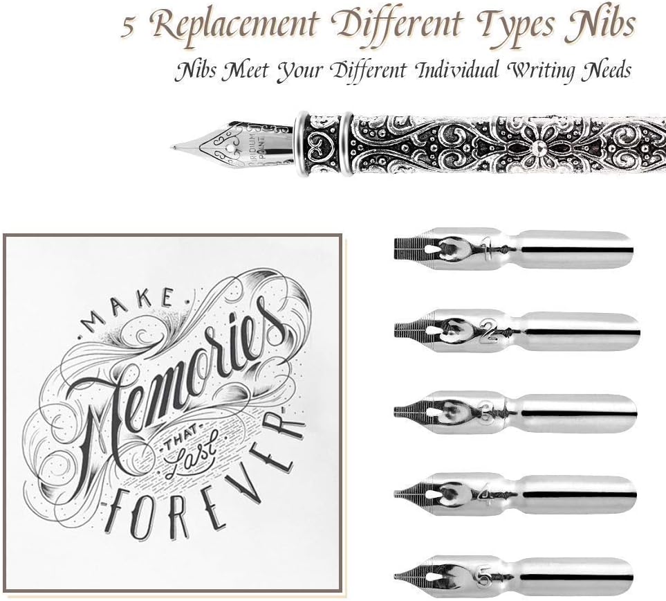 【 هدية】 مع تعبئة ممتازة، تصميم رائع، عتيق؛ مجموعة أقلام الريشة ذات الخط العتيق هذه هي هدية لائقة عالية الجودة وذات مغزى، مجموعة الريشة هذه هي هدية فاخرة مشهورة للغاية مما يعني أنك ستحبها الأصدقاء والعائلة