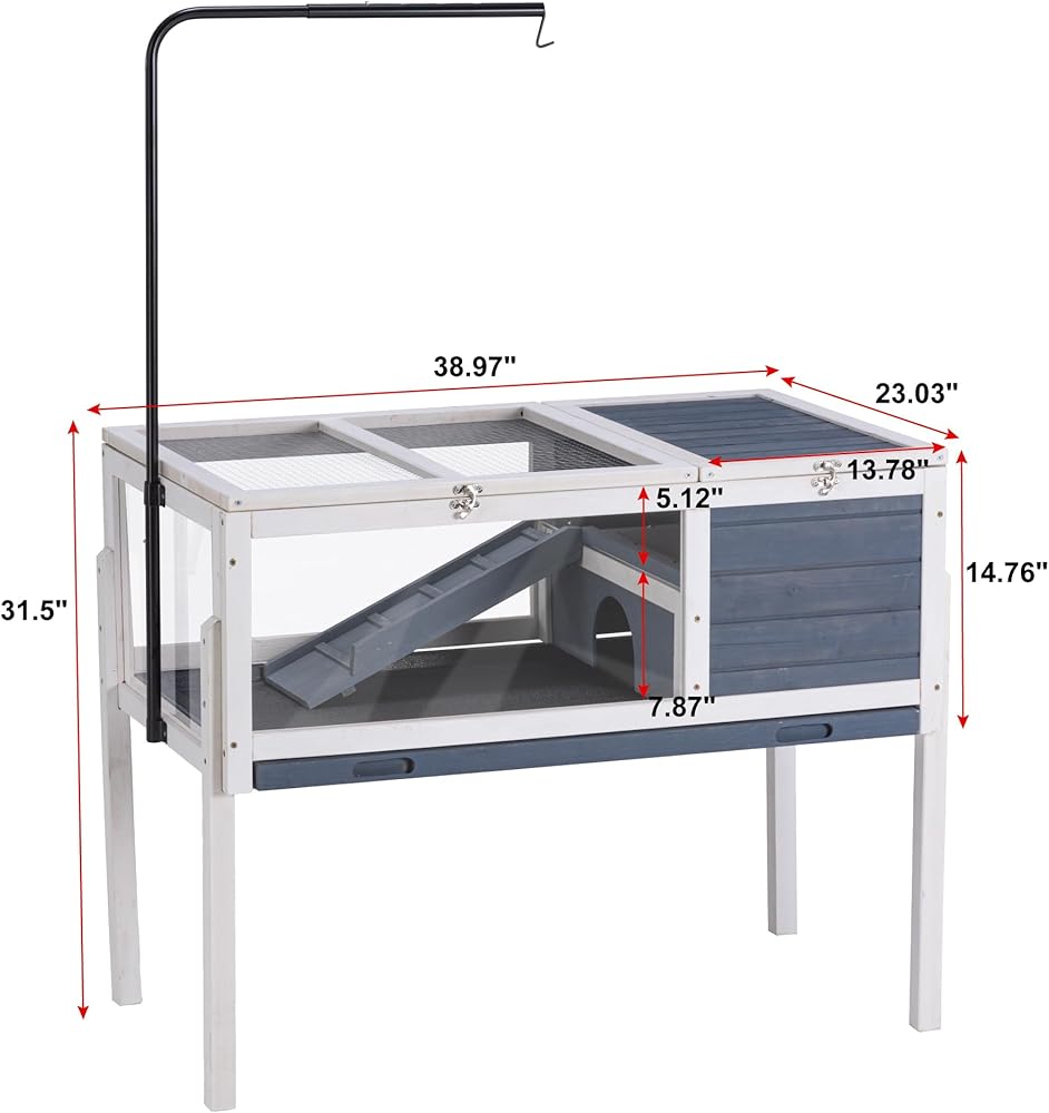🐢[الحجم والمواد المتينة]: الأبعاد الإجمالية هي 38 بوصة عرض × 24.21 بوصة عمق × 32.09 بوصة ارتفاع. حاوية السلحفاة الداخلية هذه مصنوعة من خشب التنوب عالي الجودة، مما يضمن الثبات والمتانة. حاجز شبكي فولاذي فوق مساحة المعيشة حتى تتمكن سلحفاتك من الاستمتاع بأشعة الشمس طوال اليوم، مما يمنح سلحفاتك الكثير من الهواء للتنفس.
