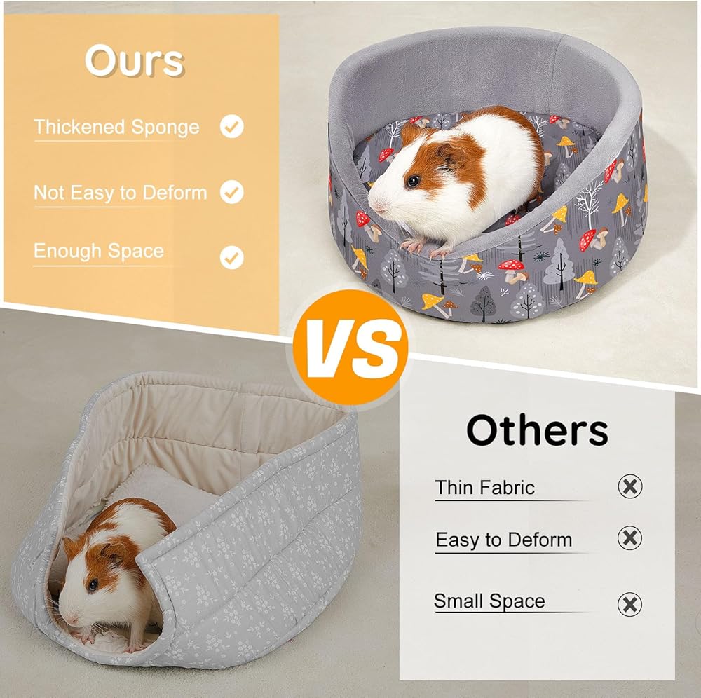 • تصميم احتضان: يتميز مخبأ خنزير غينيا الخاص بنا بتصميم على شكل عناق لتوفير الأمان لحيوانك الأليف الصغير، والفتحة الكبيرة مناسبة لدخول خنزير غينيا الخاص بك والخروج منه؛ يأتي سرير الحيوانات الأليفة الخاص بنا مزودًا بوسادة ناعمة وسطح من الصوف القطبي الفخم لتوفير الراحة والدفء لحيوانك الصغير