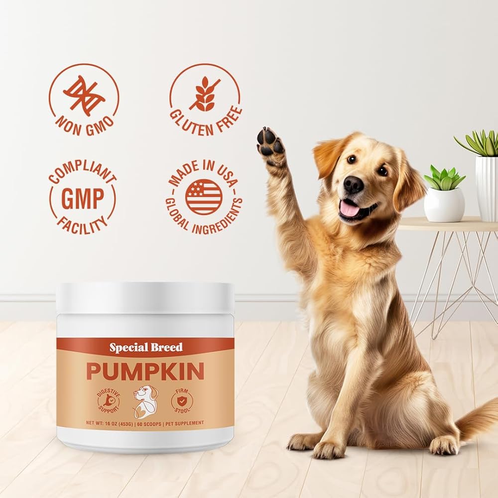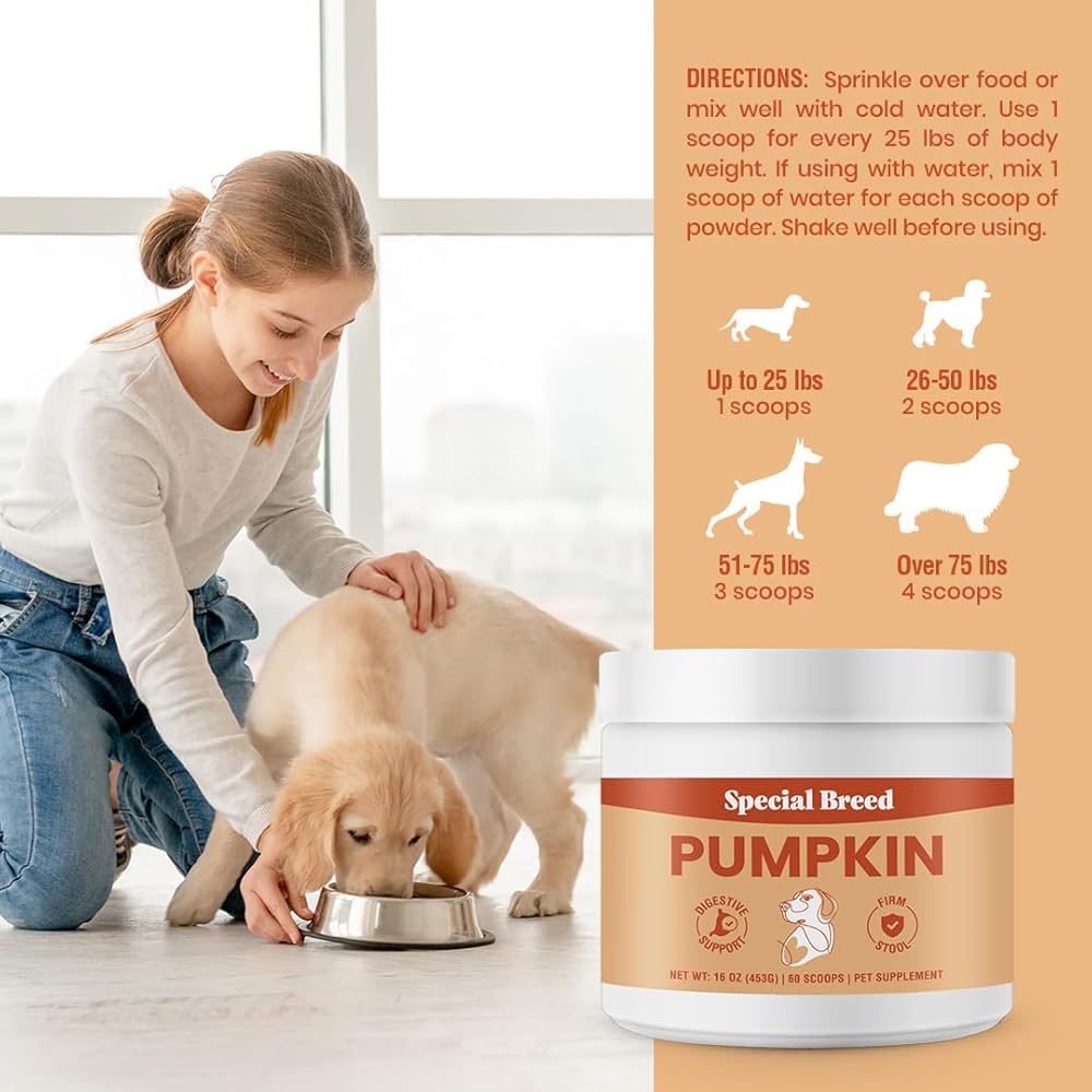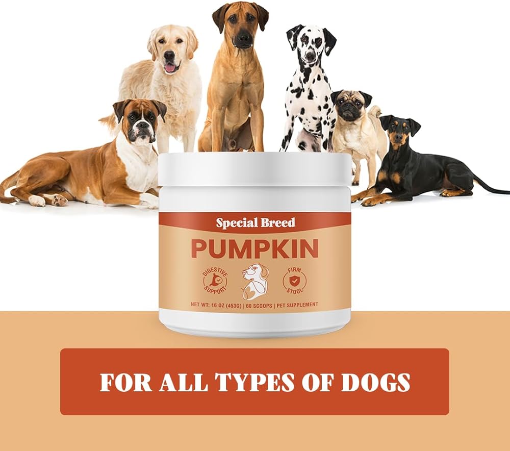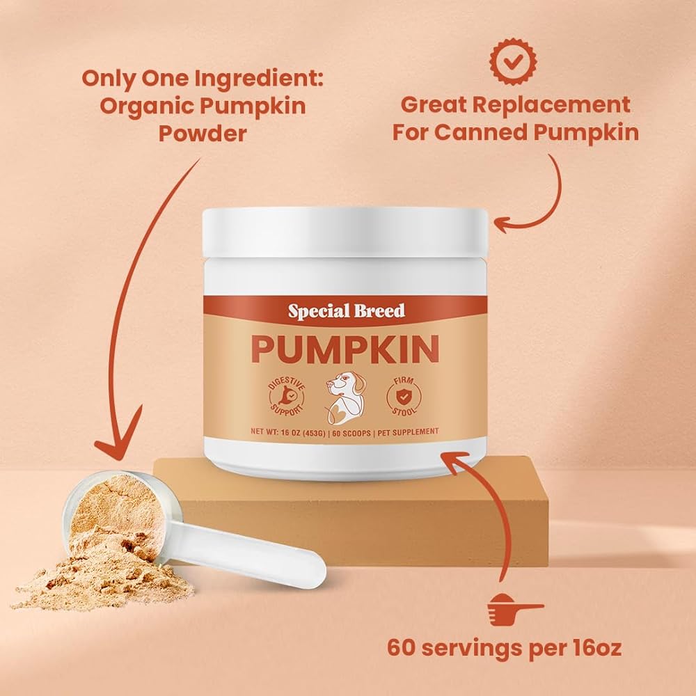 Special Breed Organic Pumpkin Powder for Dogs (16 oz) - Digestive Support - Natural Fiber for Dogs - Tasty Food Topper or Mix with Water for Pumpkin Puree, 60 Scoops