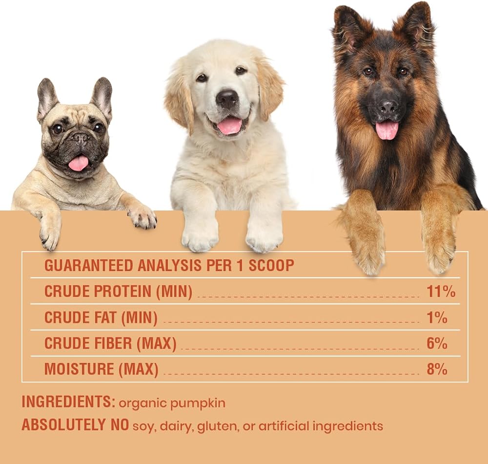 Natural Digestive Support: Our organic pumpkin powder helps with every day gut health. Rich in soluble fiber, this supplement helps with digestive issues, constipation, diarrhea, upset stomach, and helps make poops firm and dogs regular.