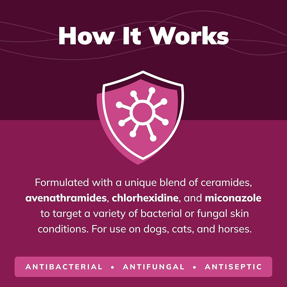 Ceraven CHX Plus MC Antiseptic Shampoo is a shampoo with chlorhexidine and miconazole, antibacterial and antifungal ingredients for skin cleansing. Ceramides and avenanthramides are skin nourishing nutrients that moisturize and calm the skin. They also support the skin's natural immune system and provide building blocks for renewed skin barrier integrity.