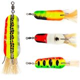 Experience fishing success like never before with our premium spinner lure kit, featuring an array of vibrant hues and versatile sizes to entice even the most discerning fish. These lures boast hyper-realistic swimming motions that captivate big game fish, making them irresistible targets. Crafted with precision, the lures' classic propeller-like blades spin vigorously as they move through the water, generating a mesmerizing display of flashes and vibrations that perfectly mimic the movements of small fish or other aquatic prey. This enticing display triggers an instinctive response in predators, ensuring your hook sets are filled with excitement. Choose from two iconic styles – the sleek in-line spinner for stealthy presentations and the dynamic tail-spinner for added action and visibility. Both are built on a sturdy machined-brass frame, ensuring durability and accuracy in every cast. The steel-stamped blades, available in either silver-plated elegance or vibrant painted finishes, add a touch of glamour to your fishing adventures. Make every occasion special with this outstanding fishing gift. Perfect for Christmas, Father's Day, or Thanksgiving, it's a thoughtful present that any angler will cherish and use for years to come. Unleash the angler's spirit within and give the gift of adventure today!
