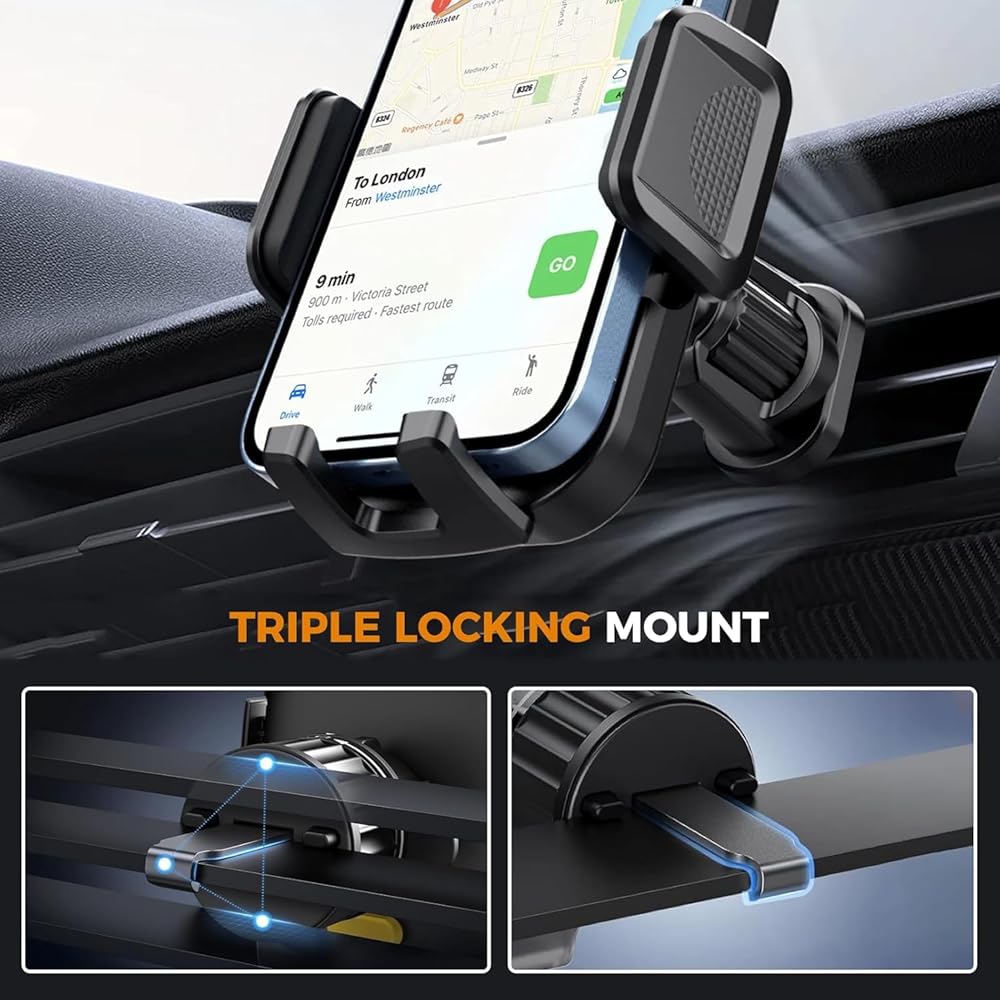 4 IN 1 car phone holder mount can be universally mounted to your dashboard, windshield or vent based on your preference