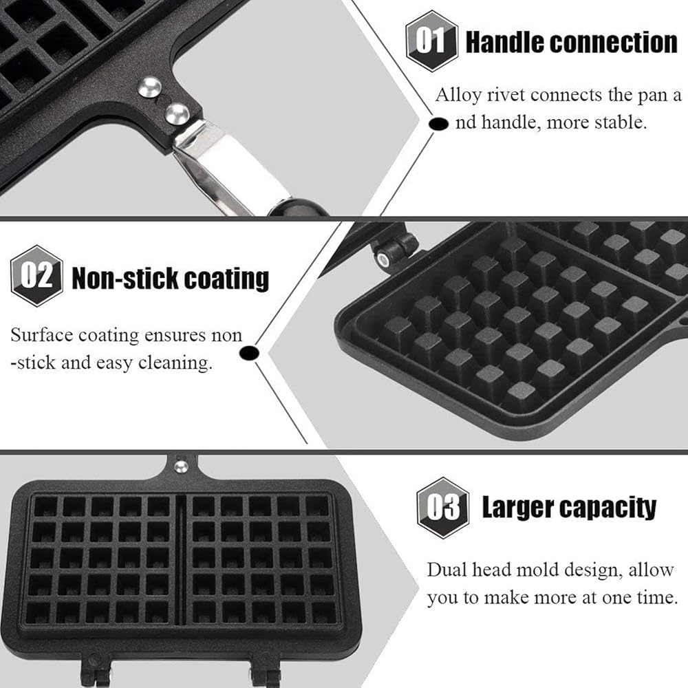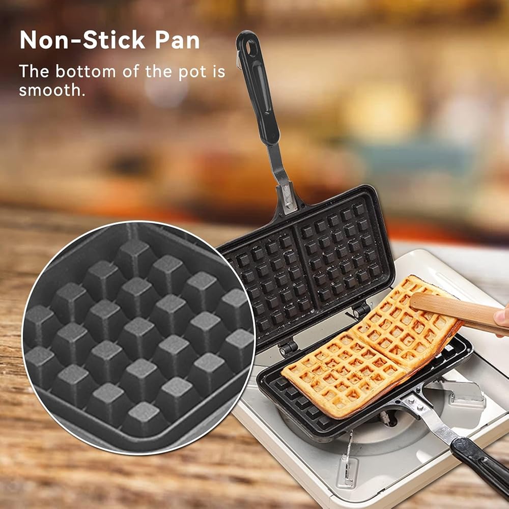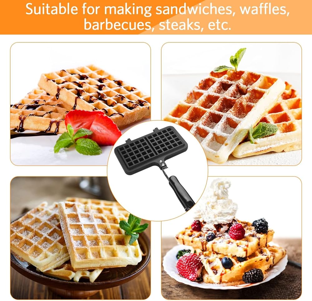 ✿ استخدام واسع: صانع الوافل البلجيكي مناسب للمنزل أو نار المخيم أو الرحلات الترفيهية. يُستخدم بأمان في موقد غاز الوقود، وليس للطهي الحثي.