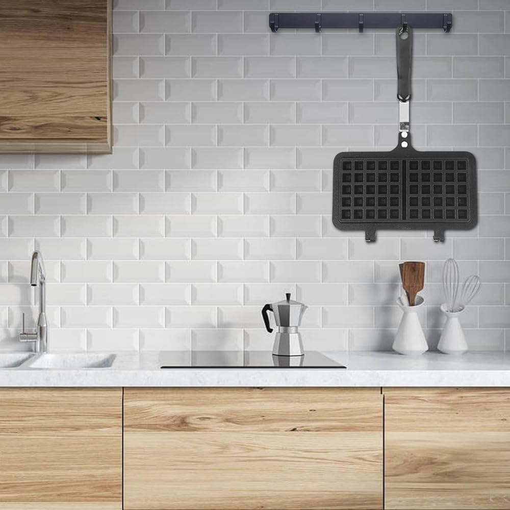 ✿ صانع الوافل من الحديد المصبوب: تصميم المقبض الطويل لصانع الوافل المزدوج سهل الإمساك ويمنع حروق اليد. مع إبزيم قفل، سهل الحمل والتخزين، ولا يأخذ مساحة.