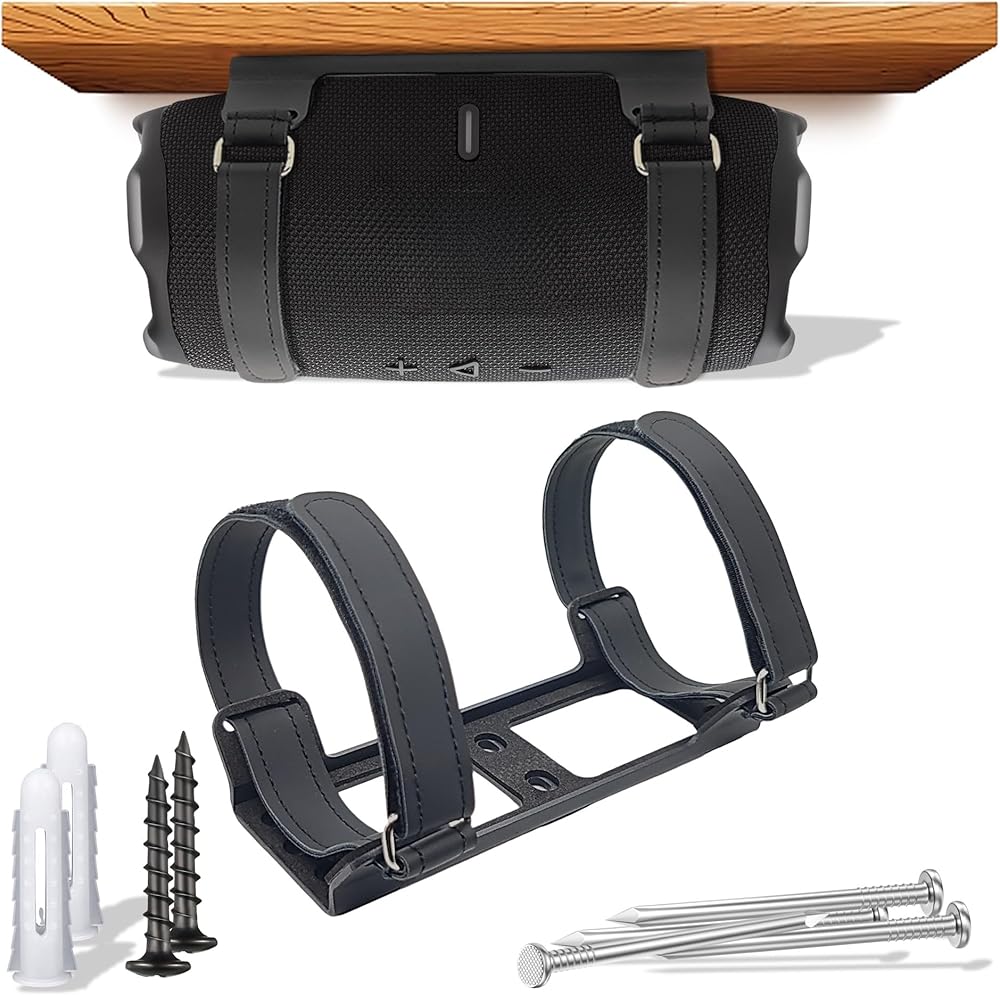 حامل حائط معدني متوافق مع jbl Charge 4/Charge 5/Flip 6/Flip 5، حامل رف آمن مع أشرطة جلدية قابلة للتعديل، دعامة جدارية لمكبر الصوت للسقف (أسود)