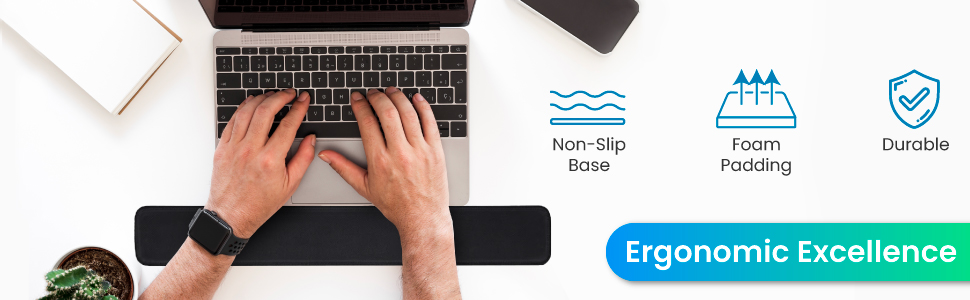 تبقى في مكانها: لا مزيد من التشتيت الناتج عن انزلاق وسادة معصمك من مكانها. بفضل القاعدة المقاومة للانزلاق المصنوعة بخبرة، يظل مسند المعصم المستطيل المزود ببطانة إسفنجية ثابتًا على مكتبك، مما يوفر الدعم الذي تحتاجه في المكان الذي تحتاجه.