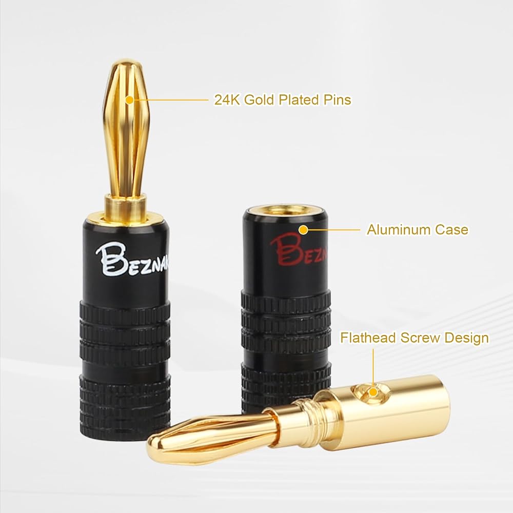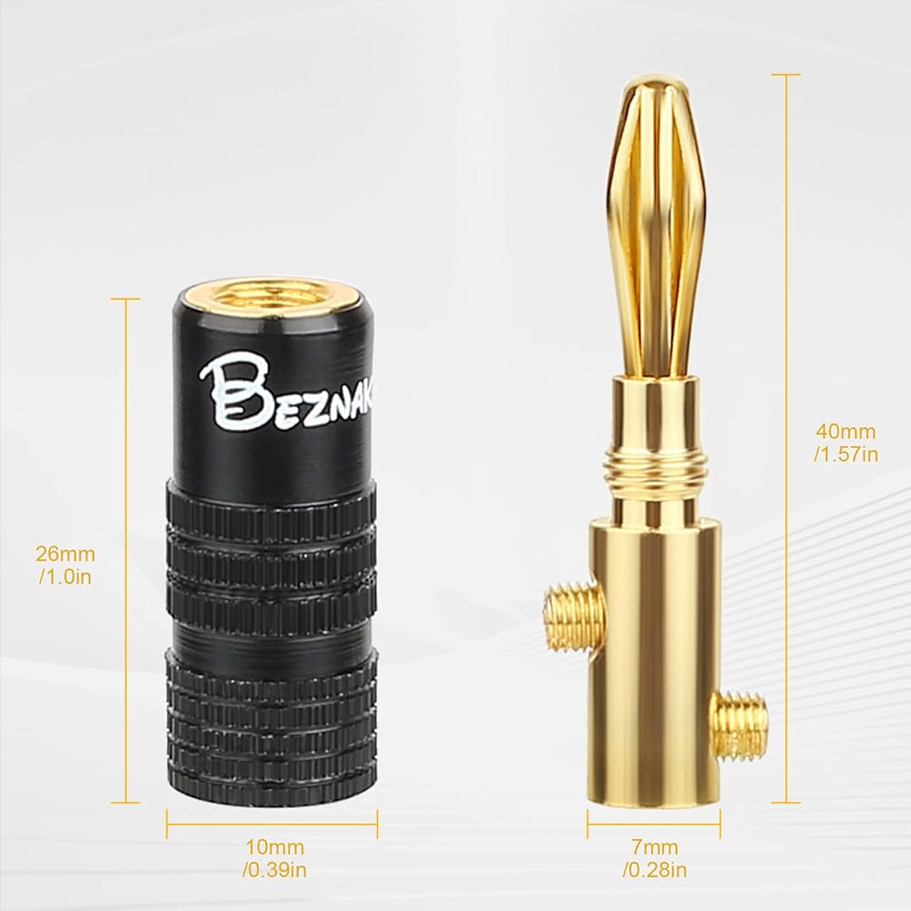 banana plugs have the quality you've come to expect from Beznaka, including gold plated connectors and a heavy-duty casing.