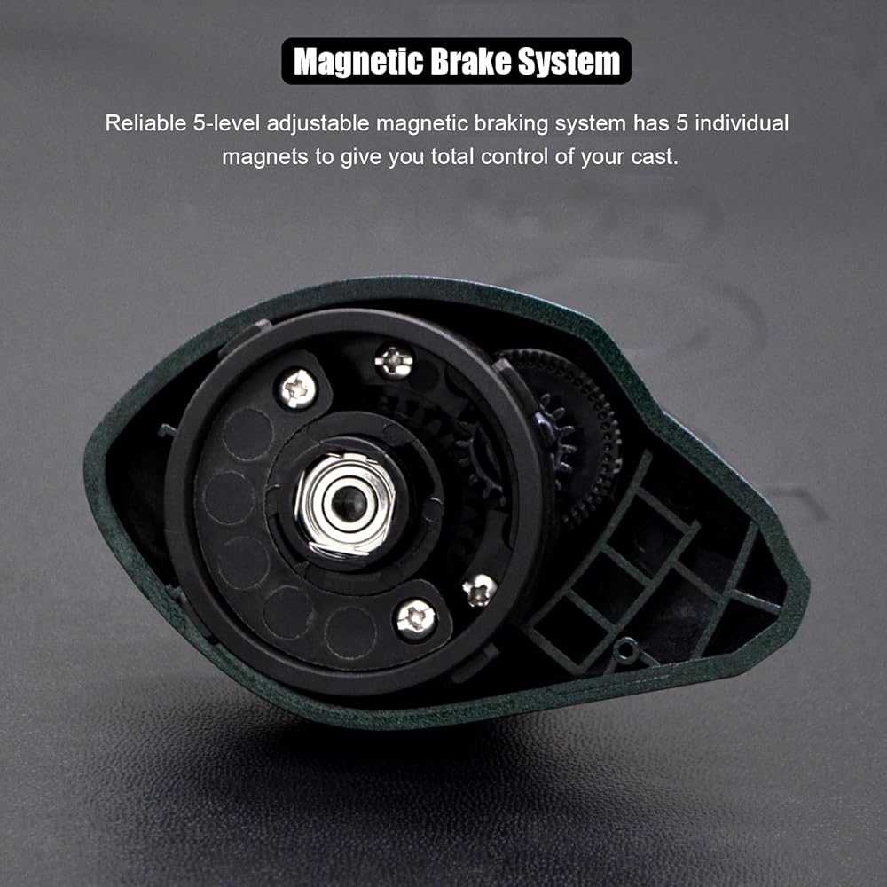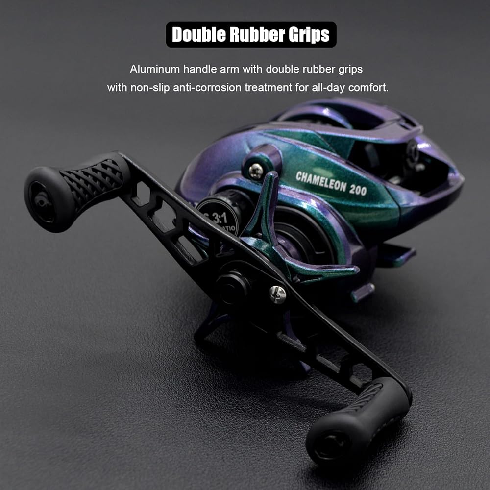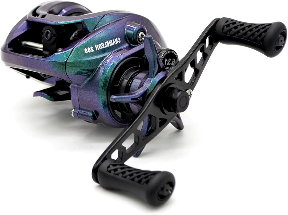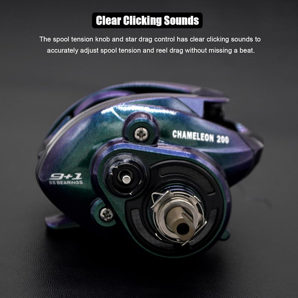Easy to Control - The skeletonized design of the machined aluminum spool maximizes weight savings, and the spool tension knob and star drag control has clear clicking sounds to accurately adjust spool tension and reel drag without missing every bite. For more time to fish, the Chameleon 200 casting reel is equipped with an externally adjustable 5-level magnetic braking system with 5 magnets that effectively eliminates casting issues while maximizing casting distance.