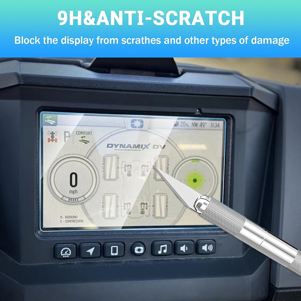 Premium Tempered Glass: Made from premium tempered glass with a surface hardness of 9H, this protector effectively resists scratches and other forms of damage, offering comprehensive protection for your navigation system