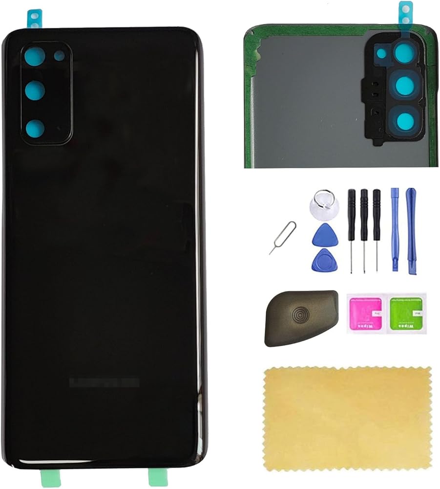 مجموعة أغطية زجاجية خلفية بديلة لهاتف Galaxy s20 لهاتف Samsung Galaxy S20 SM-G980 SM-G981 مقاس 6.2 بوصة - أسود كوني (لا يناسب إصدار Galaxy s20 Plus)