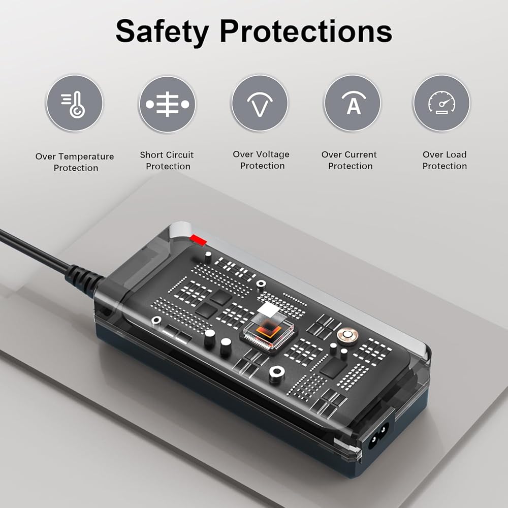 • أمان الشحن: محول تيار متردد/تيار مستمر 42 فولت 1.7 أمبير مصنوع من مواد متينة، حماية من درجة الحرارة الزائدة، حماية من الدائرة القصيرة، حماية من الجهد الزائد، حماية من التيار الزائد، حماية من الحمل الزائد