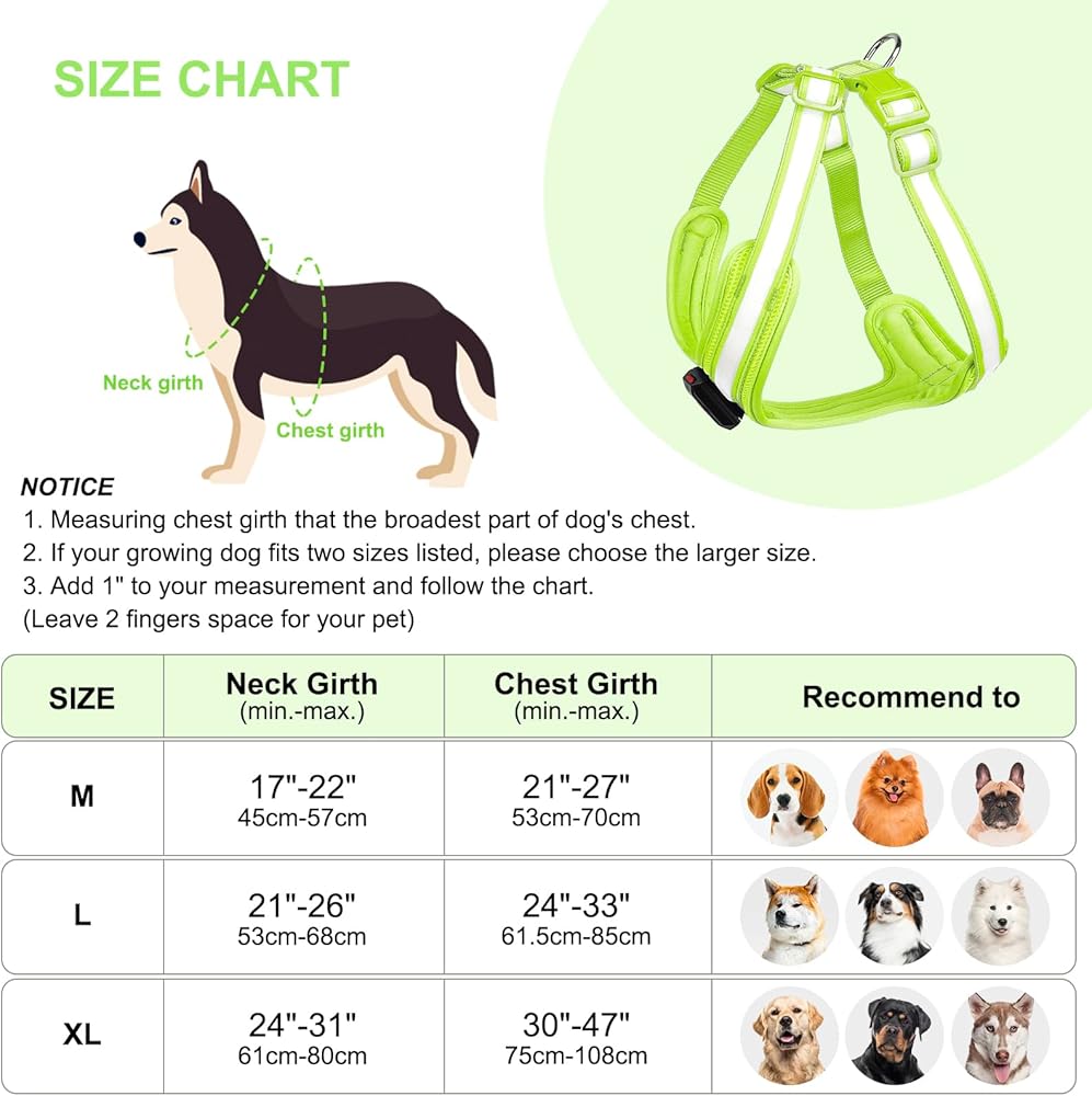 LED Dog Harness Rechargeable, Light Up Dog Harness No Choke Illuminated Glow Dark Harness Vest for Medium Large Dogs for Night Safety Walking-Green,Medium