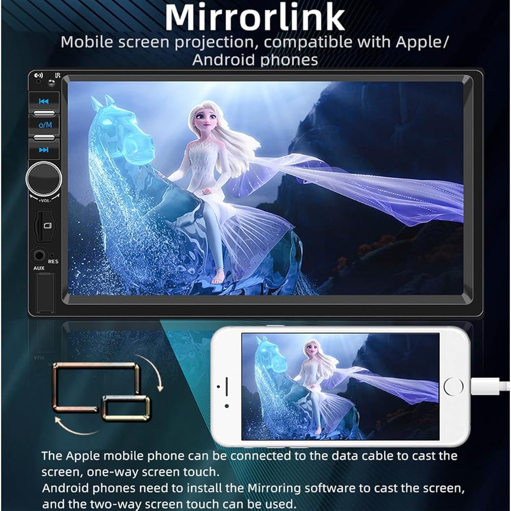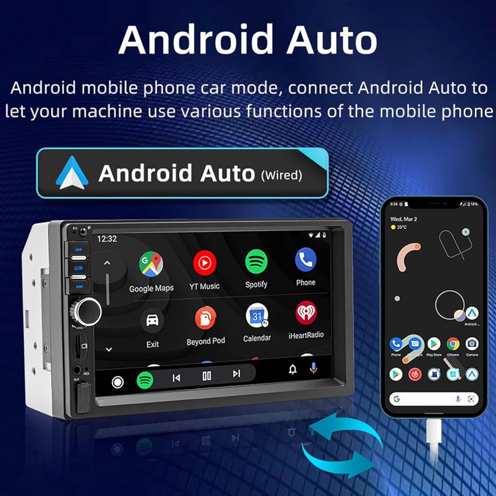 7 Inch 2 DIN Android 11 Car Radio: The Android car radio with 7 inch capacitive touch screen, 1GB RAM and 16GB ROM provides enough space to download your favourite apps and videos, so driving won't be boring anymore. With two USB ports, it supports fast mobile phone charging.