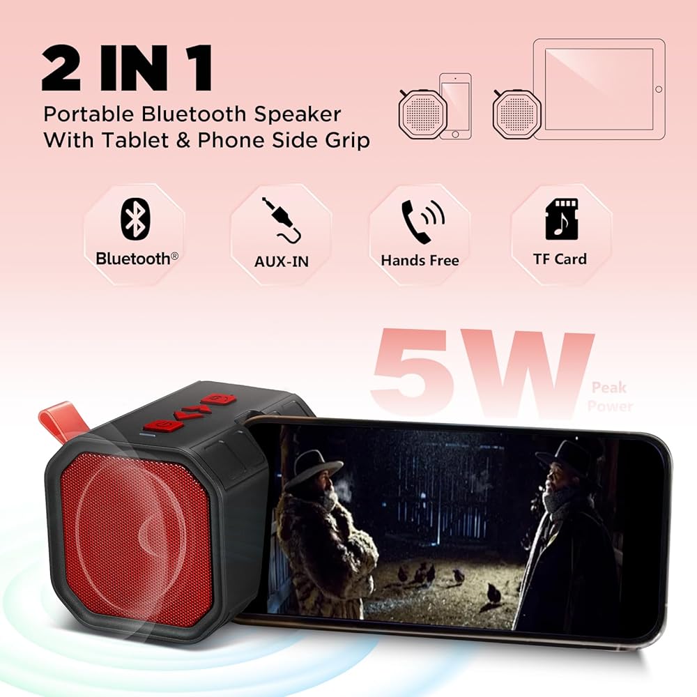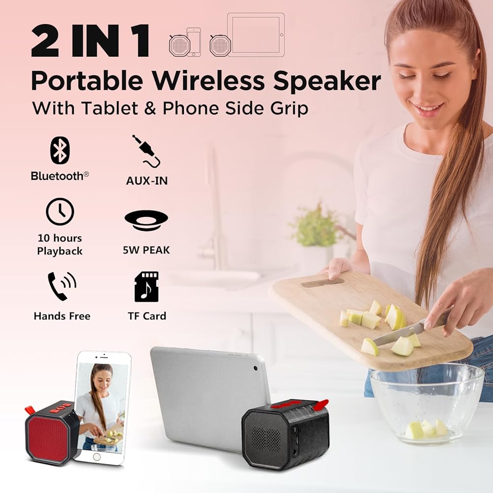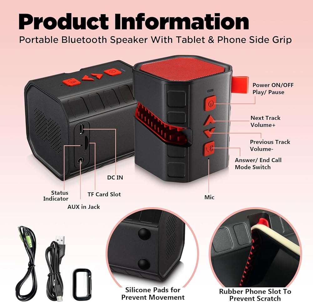 حامل هاتف خلوي محمول مع مكبر صوت بلوتوث - هدية رائعة للرجال والنساء، حامل هاتف خلوي مضاد للانزلاق مع صوت ستيريو عالي الدقة لهاتف iPhone، iPad، وقت تشغيل يصل إلى 10 ساعات بحد أقصى، ميكروفون مدمج، AUX، فتحة بطاقة TF