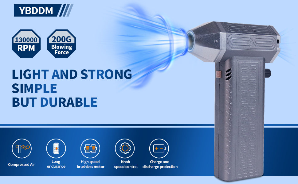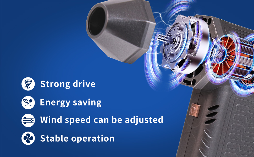 【 New turbofan dust removal 】 The turbine air dust collector adopts a more advanced adjustment method, using the knob to adjust the wind speed. When you want to remove the water stains on the window, the hair on the sofa, the fallen leaves on the ground, etc., you can easily set the wind speed you want to use through the knob to serve you, and no longer have to worry about the excessive wind speed causing damage to glass, leather, sand sputtering and so on