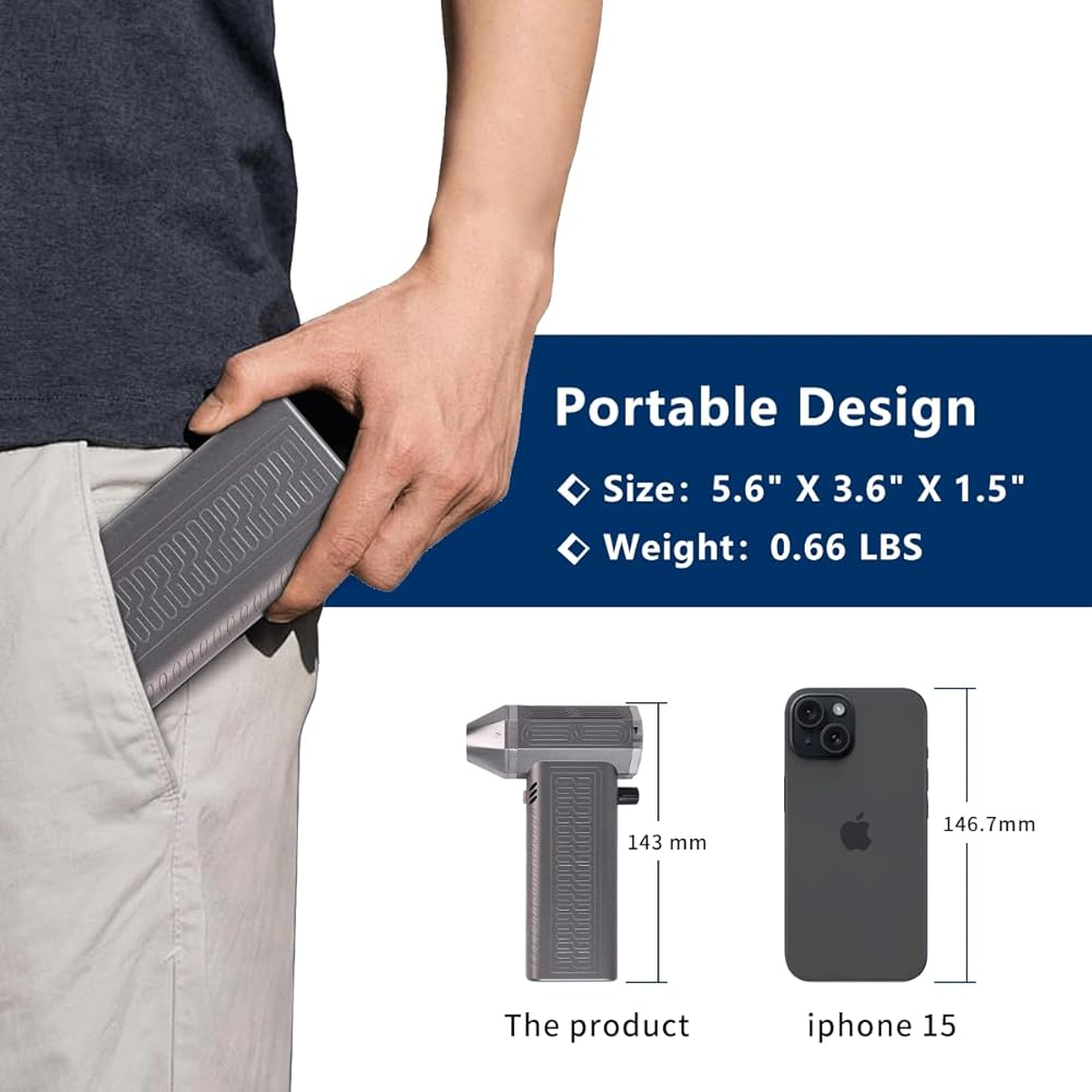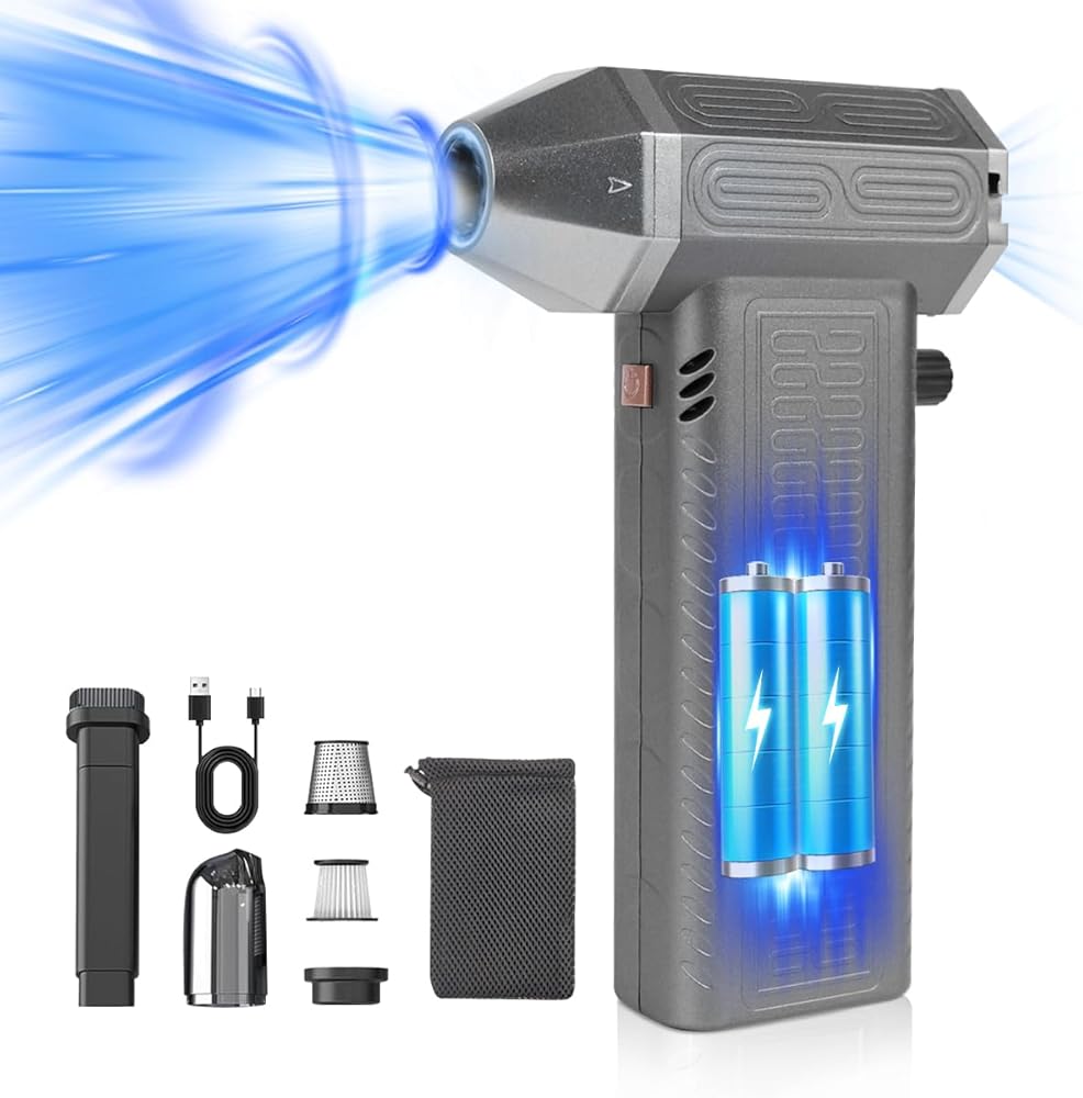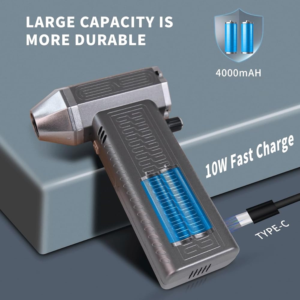 Air Duster - Versatile Super Air Broom 130000rpm for Fast Drying- Portable Handheld Stepless Speed Change Car Dryer - Reusable Electric Hair Dryer for Keyboard, PC, Car, Air Bed, and Home Cleaning