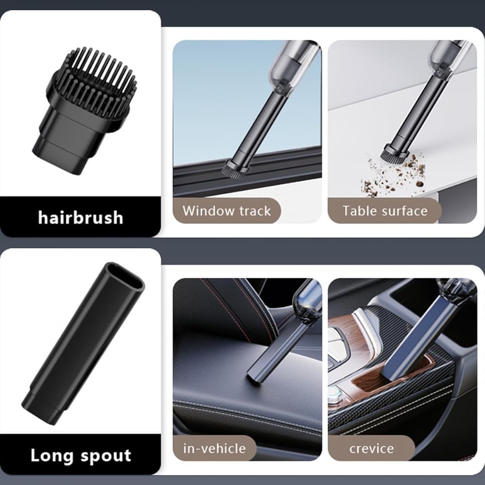【 Multi-function dust collector 】 Electronic dust collector design is very small, easy to carry, whether it is trouser pocket or handbag can be easily stored, not only through high-speed motor blowing out strong wind cleaning computer keyboard, laptop, camera, drying pet hair, car seats, blinds, sofa home, carpet, etc., with the complimentary brush head, dust cover and extension rod, It can also do deep vacuum cleaning for families and cars