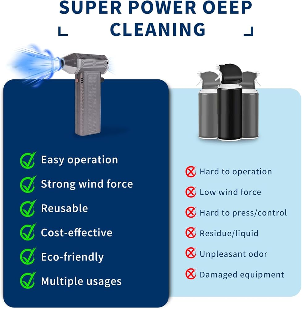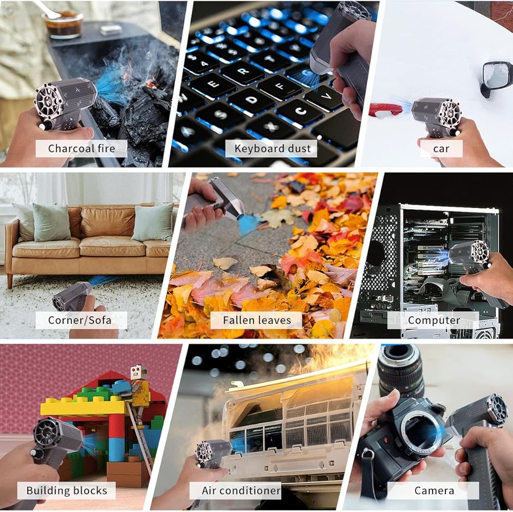 【 Electric compressed air dust collector 】 Electric dust collector with super motor, speed up to 130000rpm, powerful performance can easily remove hidden in the keyboard, sofa, cushion and other products in the gap is not easy to remove dirt, small shape is very convenient to place in the home, office or car use, is your daily cleaning the best choice