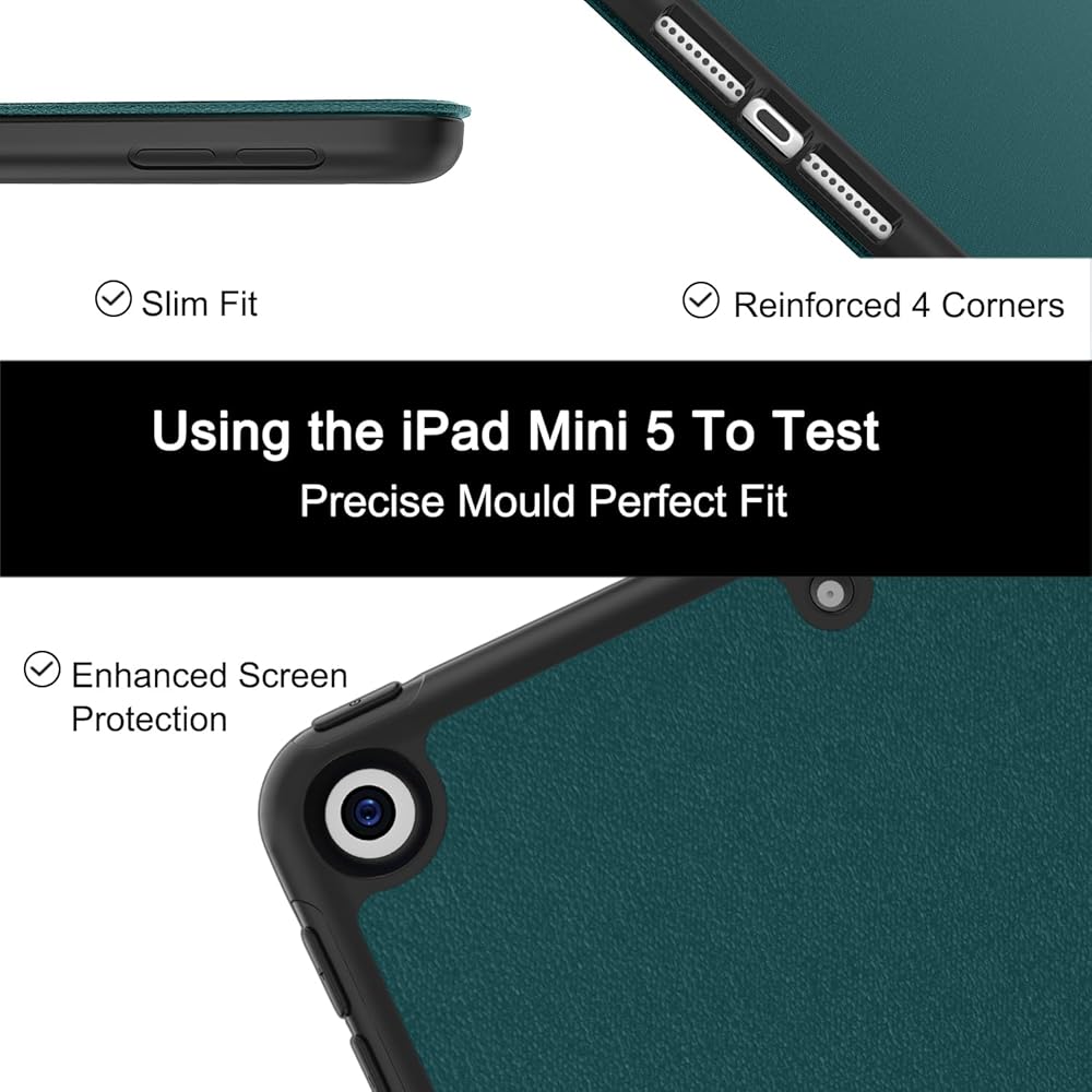 • حماية كاملة - يحمي الغلاف الخلفي المصنوع من مادة TPU جهاز iPad Mini5 الخاص بك من الصدمات والسقوط والتأثيرات. طبقة بطانة ناعمة من الألياف الدقيقة تحمي شاشة جهازك اللوحي من الخدوش وبصمات الأصابع.