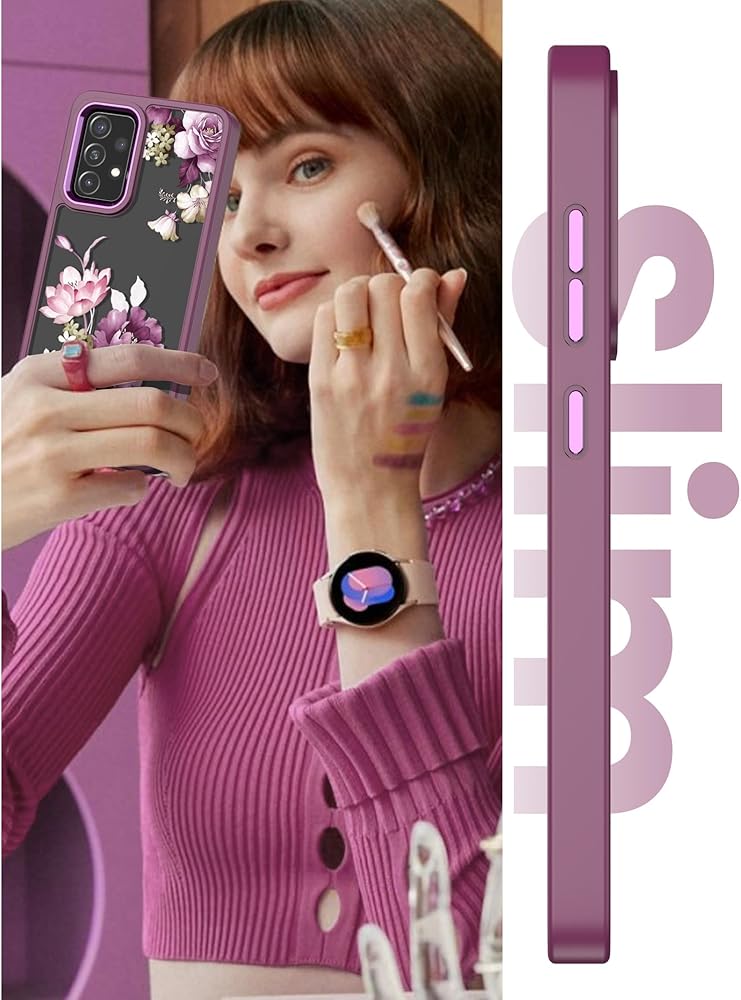 حافظة Dretal لهاتف Samsung Galaxy A52 5G، حافظة Galaxy A52، ظهر صلب تم اختباره من الدرجة العسكرية وحافة ناعمة غطاء واقٍ للنساء والفتيات + واقي شاشة من الزجاج المقوى (أرجواني)