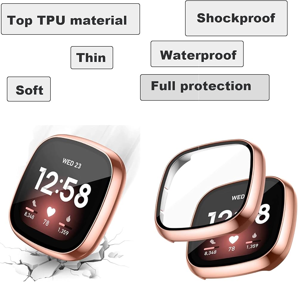 حزام الساعة والحافظة الواقية من مادة TPU متوافقة فقط مع Fitbit Versa3/Sense، مناسب جدًا للعمل اليومي واجتماعات العمل والأنشطة الرياضية والحفلات والولائم الخاصة والسياحة