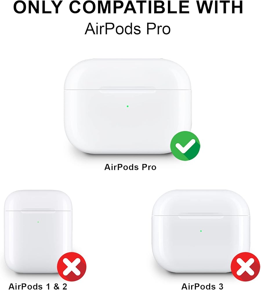 • متوافق مع Apple AirPods Pro Gen 1 و2 - مصمم للعمل فقط مع Apple AirPods Pro (الجيل 1 و2). يتضمن فتحة في الأسفل لسهولة الوصول إلى منفذ الشحن ومشبك سلسلة مفاتيح لطيف.