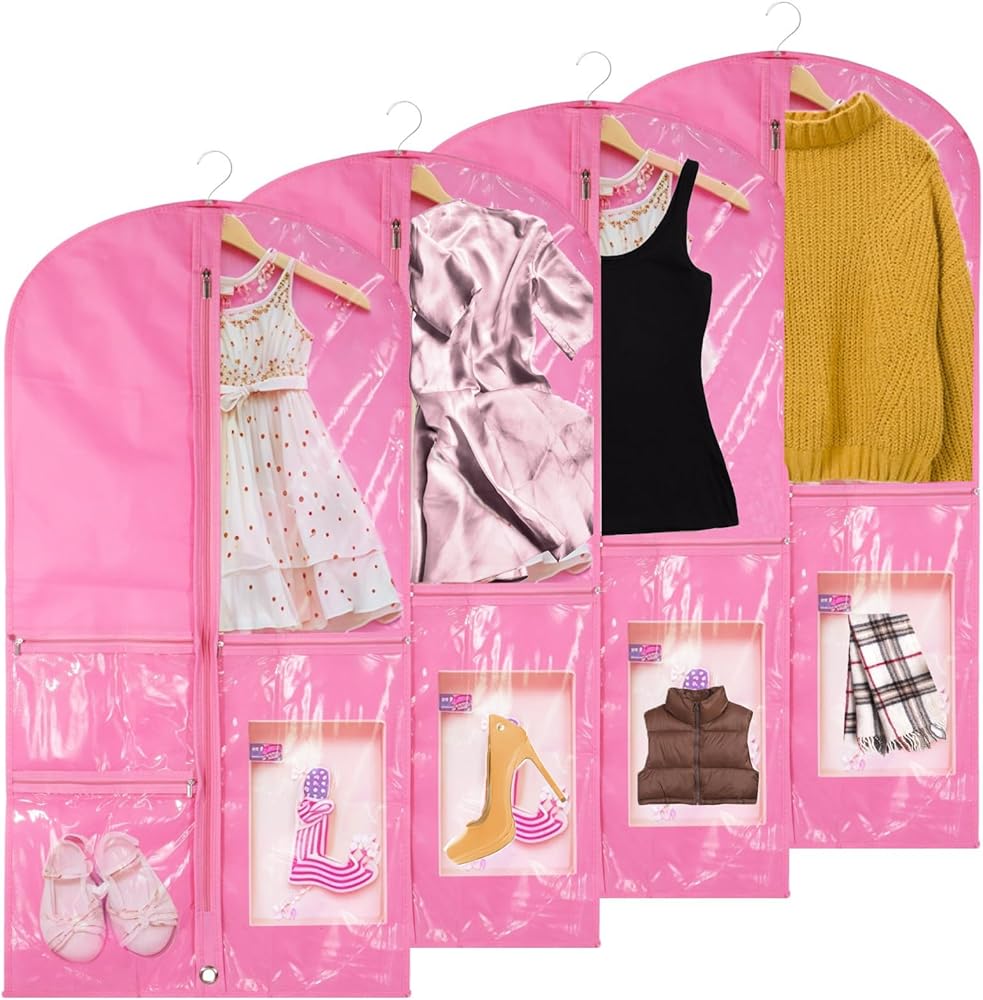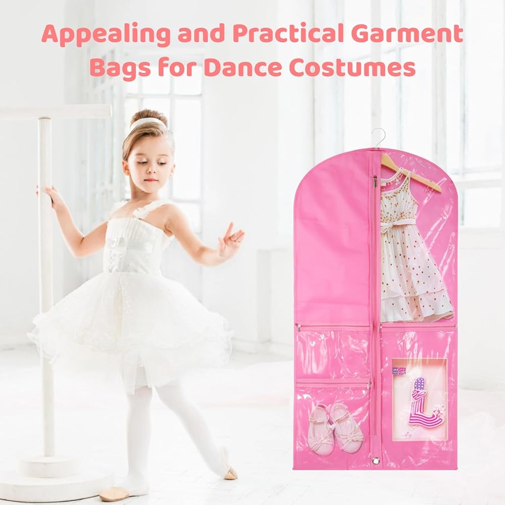 【4 Transparent Zipper Pockets】Garment bags are designed with 4 zipper pockets. These garment covers can easily store your dance costumes, socks, headbands, dance shoes, etc. The dance garment bags can make your dance journey more enjoyable and convenient.