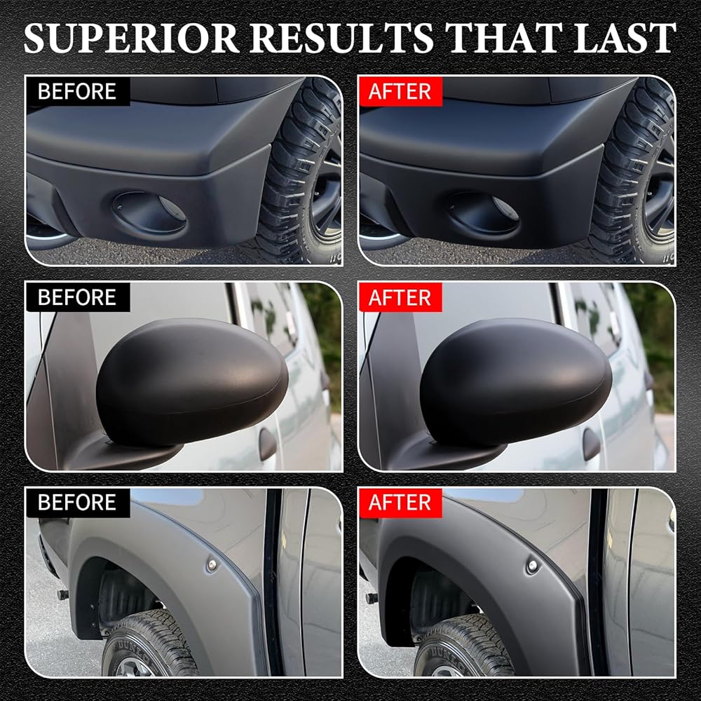 إعادة البلاستيك إلى الحياة: أعد أي شيء مصنوع من البلاستيك أو المطاط أو الفينيل إلى الحياة، وهو مثالي للسيارات والشاحنات والدراجات النارية. للحصول على لمسة نهائية تدوم طويلاً وذات مظهر احترافي، ثق في مرمم الحواف البلاستيكية السوداء للسيارات. مثالي لاستعادة البلاستيك الأسود والأسطح المزخرفة على المركبات بجميع أنواعها.