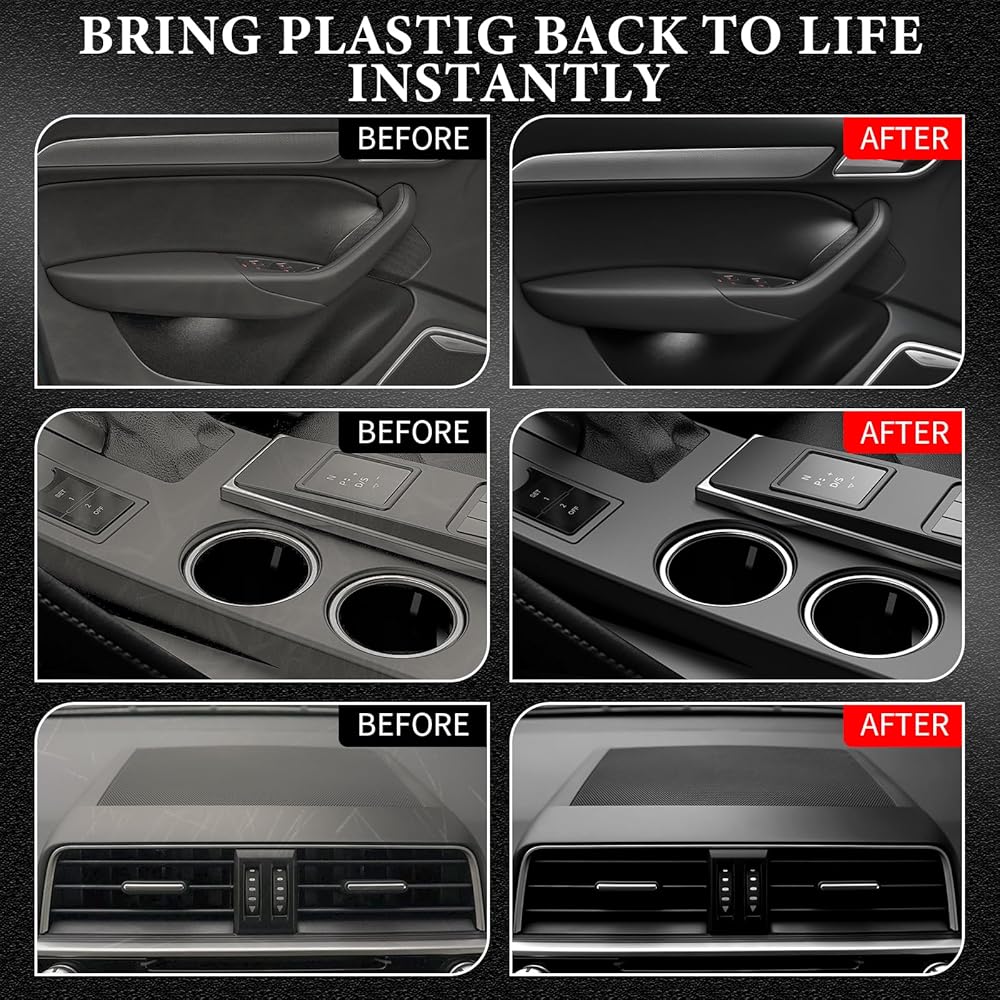 مرمم بلاستيك السيارة للداخلية: مرمم بلاستيك السيارة للاستخدام على لوحات العدادات، والمقاعد، وعجلات القيادة، ومساند الأذرع، ونوافذ السقف القابلة للتحويل، والعجلات الداخلية والخارجية، والمصدات، وما إلى ذلك. يعيد هذا المرمم سيارتك إلى الحياة، ويمنحها مظهر صالة العرض الذي تريده .