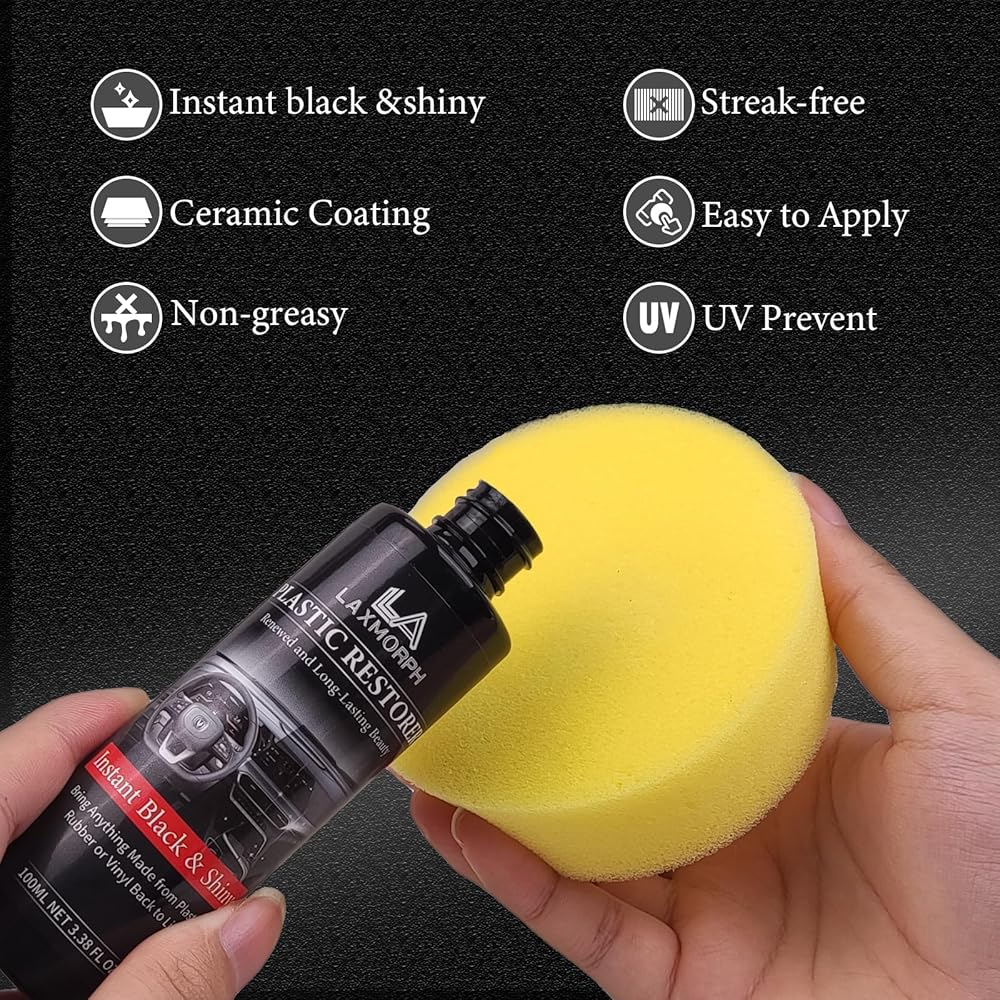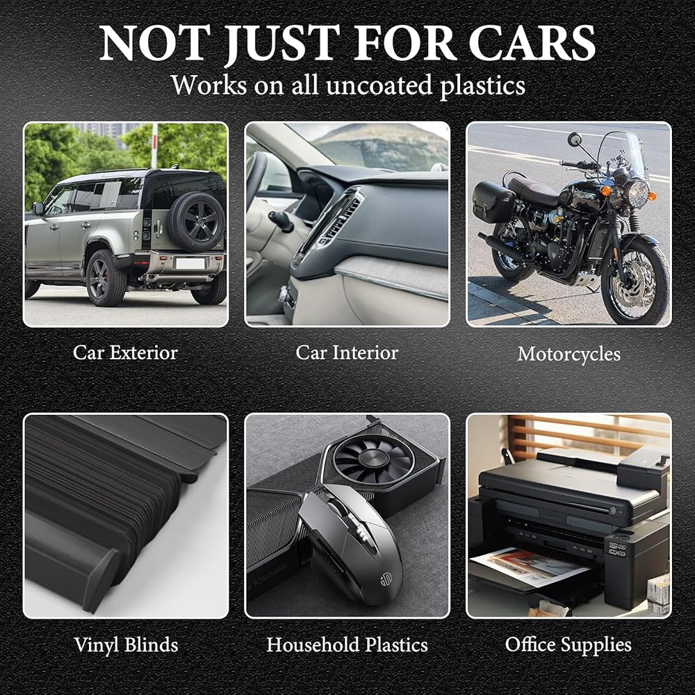 مرمم بلاستيك السيارة من الخارج: طلاء السيراميك الخاص بنا للسيارات سيعمل على العديد من المناطق التي ترغب في استخدامه. مصدات، مرايا جانبية، مقابض أبواب، أذرع مساحات وقلنسوة، فينيل، مطاط، زخرفة داخلية من البلاستيك الأسود، إلخ.