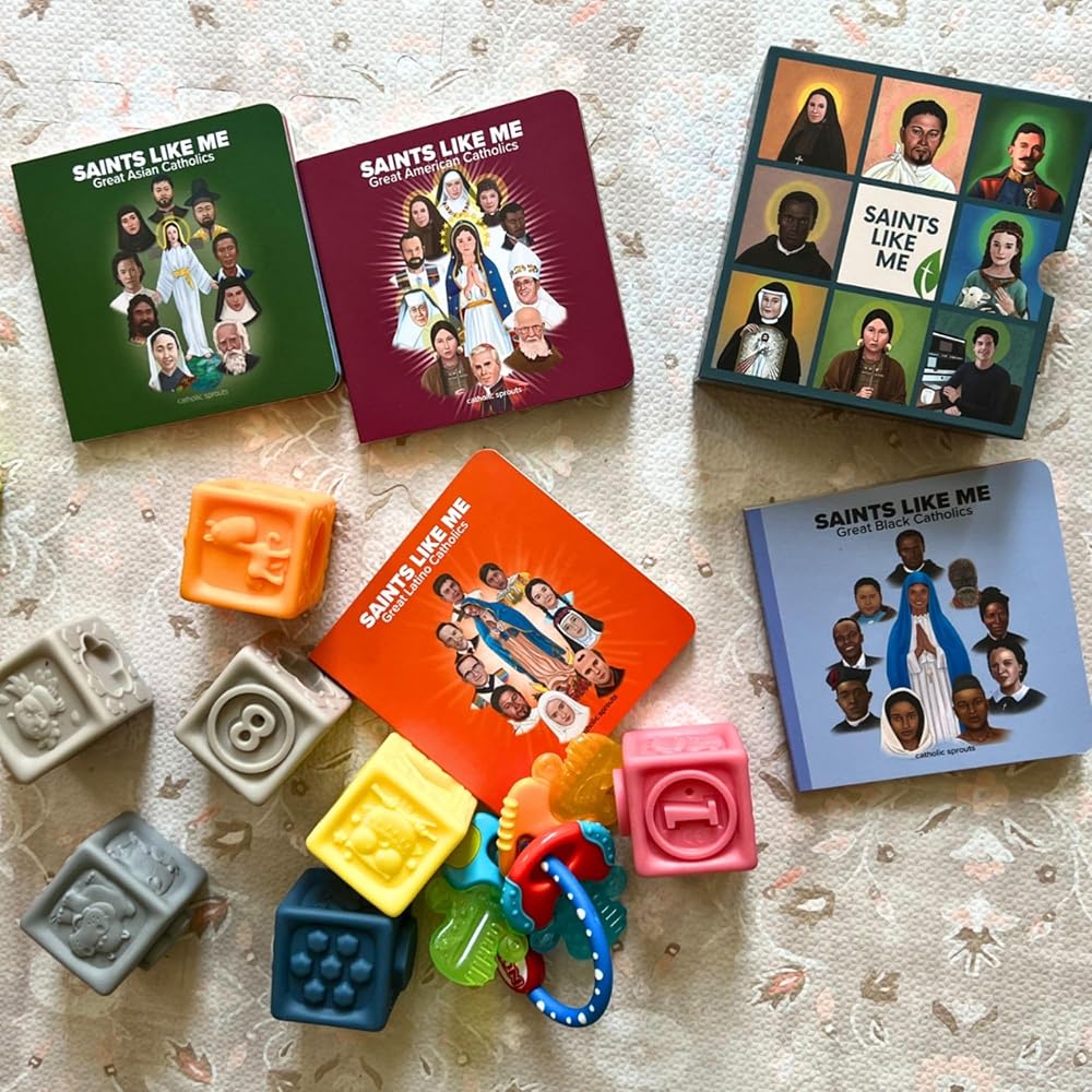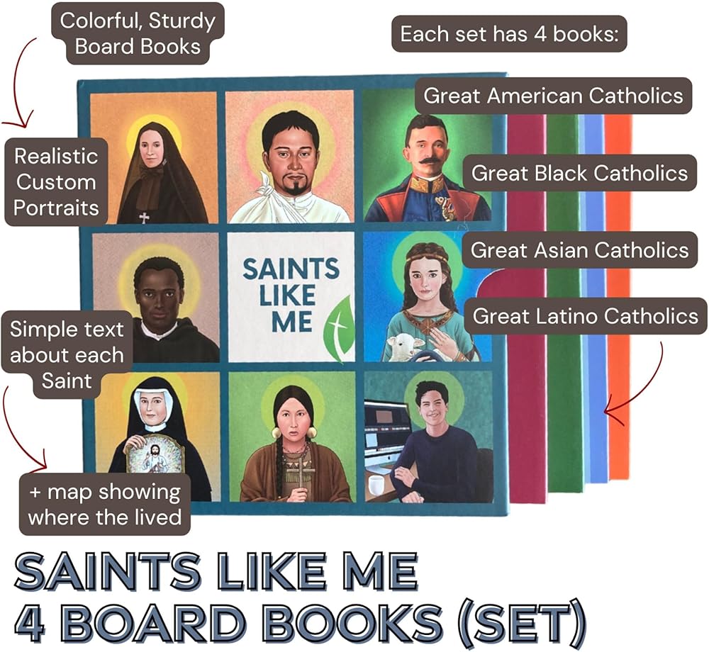 Explore the rich tapestry of saints in the "Great American Catholics" series—a collection of durable, colorful board books celebrating the diversity of faith in America. Featuring striking custom portraits and engaging narratives, each book showcases saints from diverse backgrounds: Great Black Catholics, Great Latino Catholics, Great Asian Catholics, and Great American Catholics. Crafted with simplicity and depth, these board books portray each saint realistically, offering enlightening text, maps of their living places, and inspiring quotes. The primary aim is clear: every child deserves to see saints who resemble them, emphasizing that sainthood transcends race, culture, and experiences. From St. Kateri Tekakwitha to St. Juan Diego, St. Moses the Black to Bl. Peter Kibe, these books highlight the universality of sanctity and the beautiful diversity within the Catholic faith. This unique collection inspires young hearts, resonating with children of all backgrounds and reminding them of their call to holiness. Delve into these vibrant pages and ignite a spark of faith, allowing the stories of these remarkable saints to speak to the souls of young readers. All you angels and saints, pray for us!