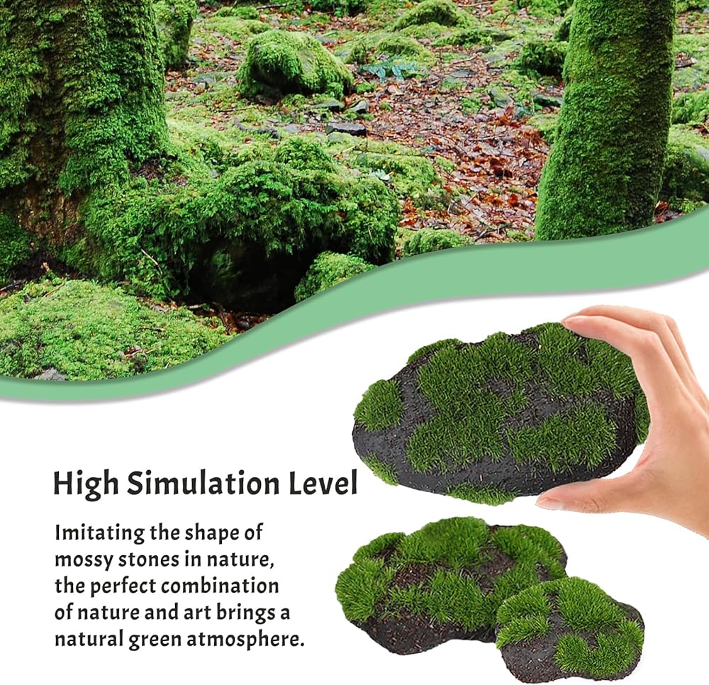 • 【Foam Material】Our foam stone is wrapped with simulated vegetation,and the inside of faux handmade green moss decorative stones is made of foam material.Moss foam rocks is light and durable, not easy to damage,and will not sink into the water.The appearance is realistic,as if green moss rock were a real moss stone.