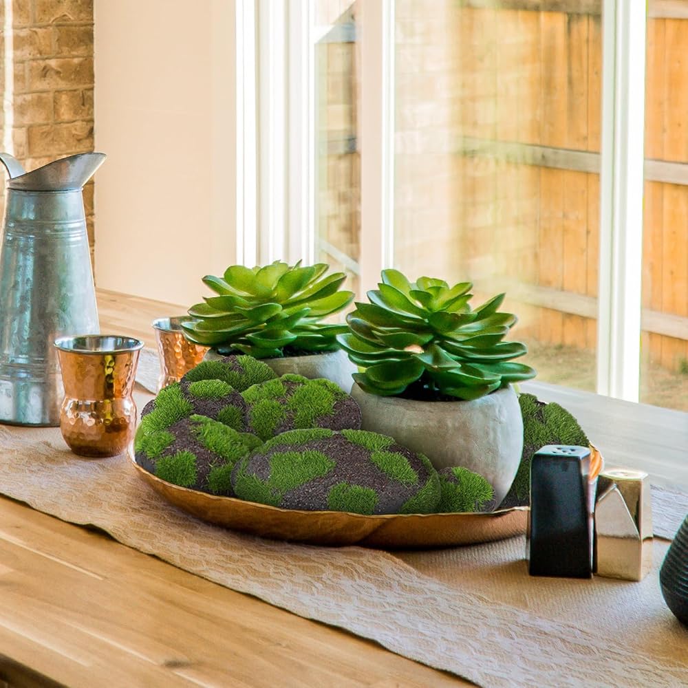 • 【No Maintenance Required】 Faux moss Stones does not require watering or sunlight, and no additional maintenance work is required to maintain its appearance for a long time.(Note: The moss down may shed slightly,fake green moss is normal and does not affect aesthetics and use.)