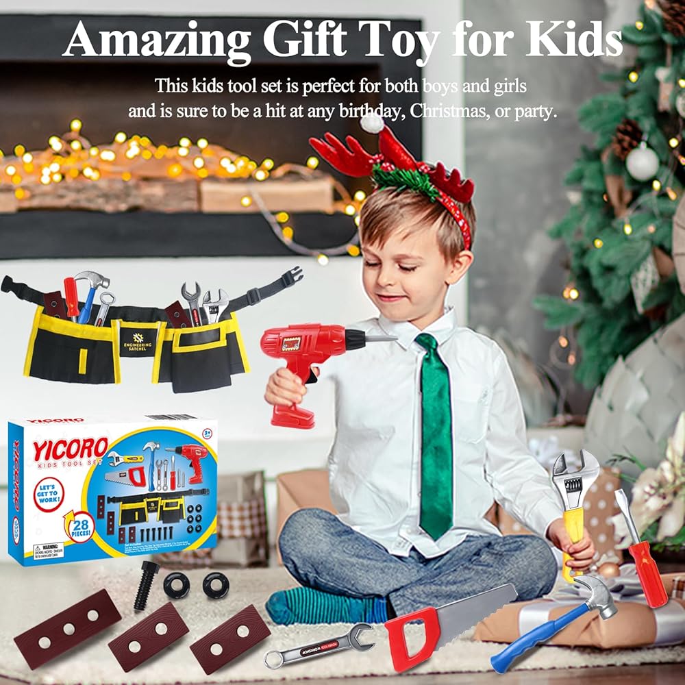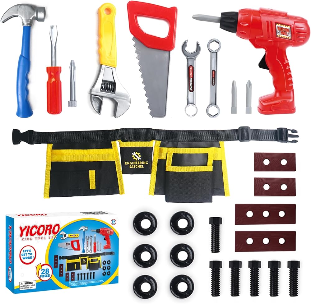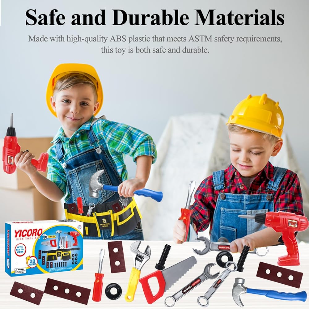 مجموعة أدوات الأطفال - 28 قطعة مجموعة أدوات للأطفال الصغار مع مثقاب لعبة، ألعاب تظاهر للأطفال، أدوات ألعاب للأطفال الذين تتراوح أعمارهم بين 3،4،5،6،7،8 سنوات، ألعاب للأولاد