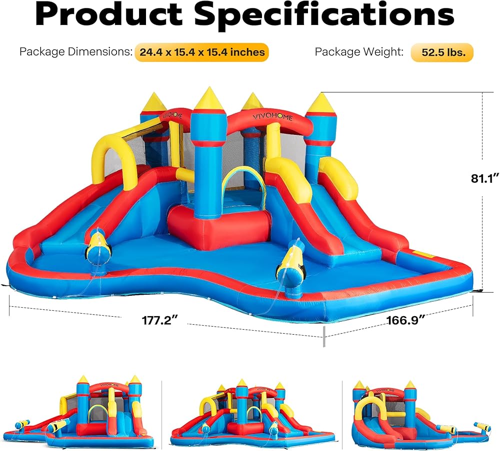 متعة لا نهاية لها للأطفال - تم تصميم هذا المنزل النطاط القابل للنفخ من فيفو هوم خصيصًا للأطفال؛ تتميز بمساحة قفز كبيرة تبلغ 6.2 × 5.2 قدم وشريحة بطول 5.2 قدم، مما يوفر ساعات من القفز والانزلاق الممتع للأطفال الصغار والأطفال النشيطين؛ يمكن أن تدعم ما يصل إلى 400 رطل، مما يجعلها مناسبة لحفلة مكونة من 2 إلى 3 أطفال في وقت واحد؛ هذه القلعة القابلة للنفخ الملونة والنابضة بالحياة هي الهدية المثالية لمساعدة الأطفال على تطوير قدراتهم الرياضية والتنسيق