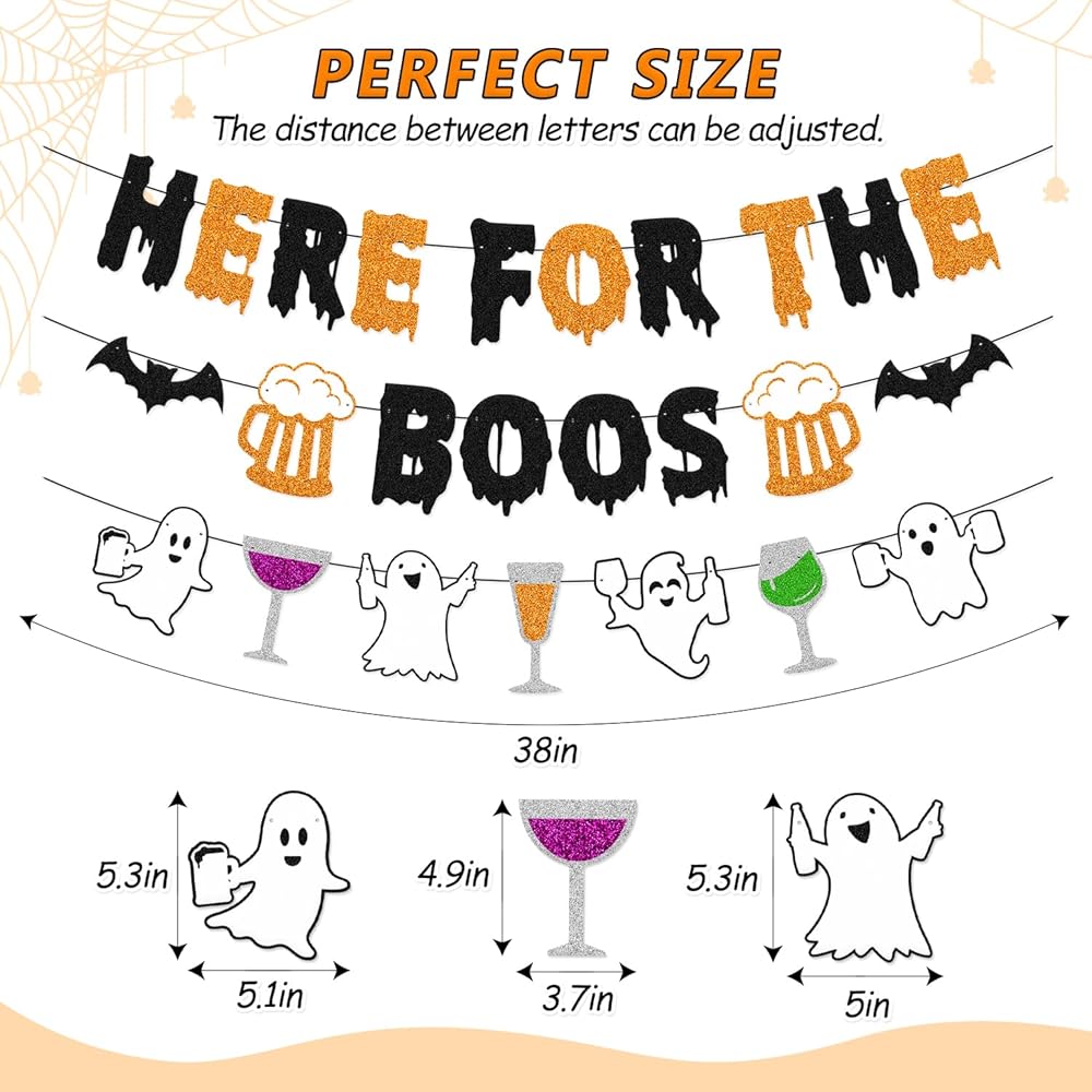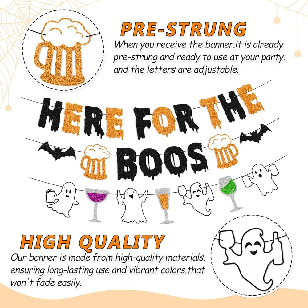 Bring a spooky yet festive touch to your Halloween celebrations with this 'Here for the Boos' banner. Crafted with high-quality materials, this banner is designed to withstand indoor and outdoor use, ensuring it remains vibrant and eye-catching throughout the season. With its playful design and bold lettering, this banner is sure to delight trick-or-treaters and party guests alike. Hang it on your front door, porch, or across a wall to create a haunting atmosphere that will leave a lasting impression. Whether you're hosting a haunted house or simply decorating for the holiday, this banner is a must-have addition to your Halloween decor collection.