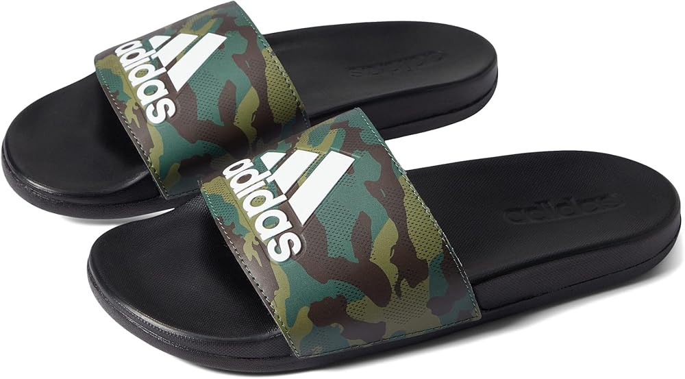 صندل Adidas Adilette Comfort Slides، أسود/أسود/أبيض، 1 US للجنسين للأطفال الصغار