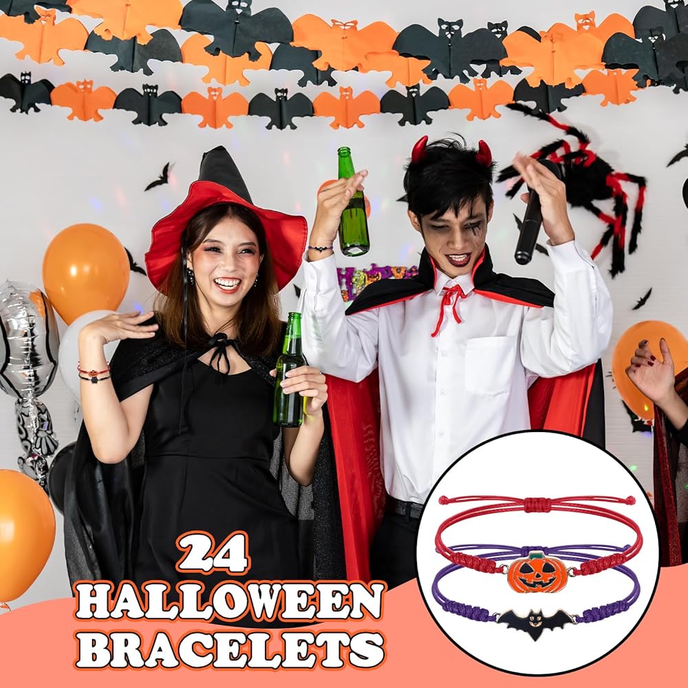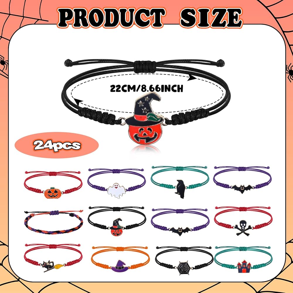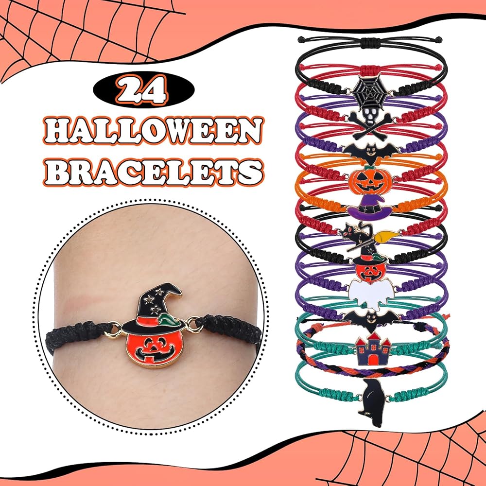 24 قطعة من أساور سلسلة الهالوين هدايا حفلات الهالوين جمجمة شبح اليقطين أساور الصداقة للنساء هدايا الهالوين حشو حقيبة الهدايا