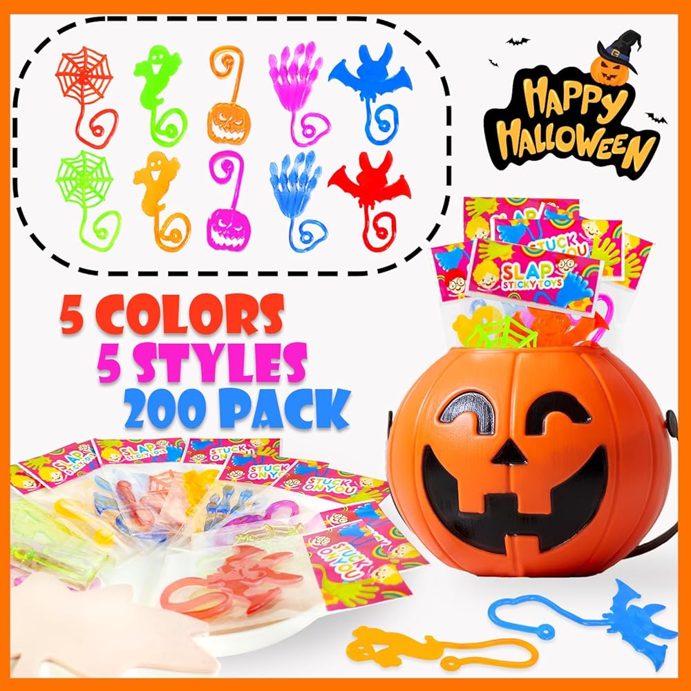 Halloween Sticky Toys 20PCS - Unleash spooky fun with our Halloween Sticky Toys set featuring 5 styles – sticky hands, pumpkins, ghosts, spiders, and bats. With 5 vibrant colors – red, rose, green, orange, and blue – and a total of 20 individually wrapped pieces, these toys offer endless entertainment for kids.