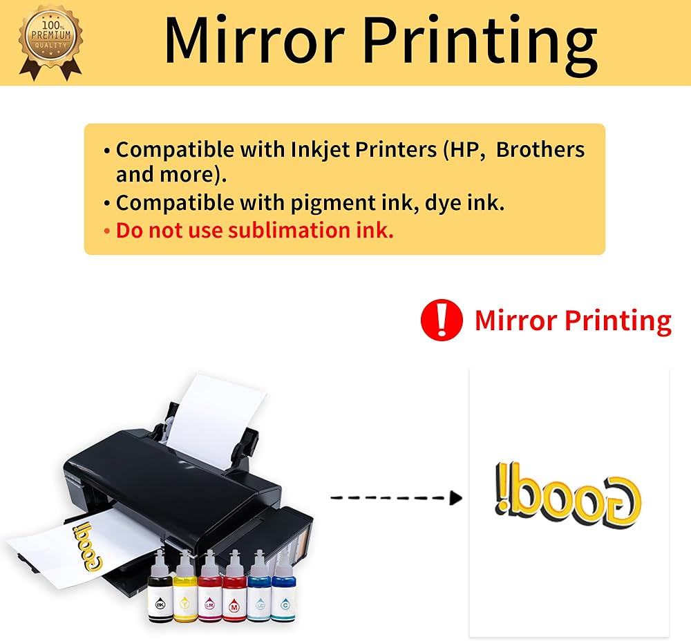 💕Requirements: Inkjet Printers (HP, Brother and more) | Pigment Ink or Dye Ink | Scissors | Household Iron or Heat Press machine.