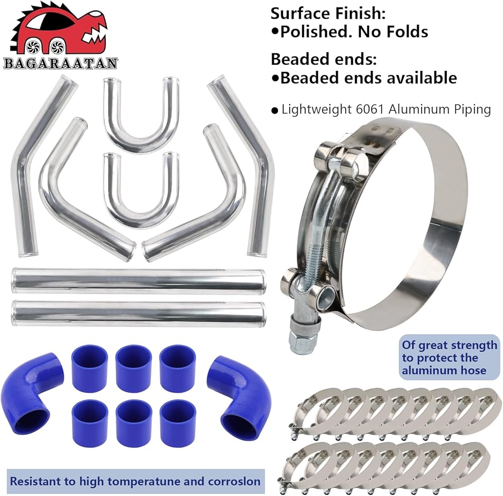【كمية التعبئة】تتضمن مجموعة أنابيب المبرد الداخلي 2x أنابيب ألومنيوم مستقيمة، 2x أنابيب ألومنيوم 45 درجة، 2x أنابيب ألومنيوم 90 درجة، 2x أنابيب ألومنيوم U، 2x 90 درجة خرطوم سيليكون، 6x خرطوم مستقيم، 16x مشابك على شكل حرف T من الفولاذ المقاوم للصدأ. القطر الخارجي للأنبوب: 3 بوصات، طول أنبوب الألومنيوم: 23.62 بوصة / 60 سم، السمك: 1.8 ملم.