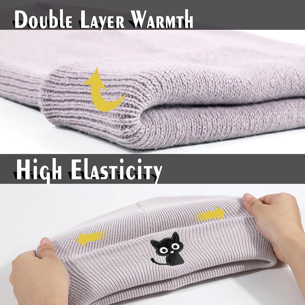 مرونة ودفء عاليين: قبعة القطط هذه مصنوعة من مزيج ناعم ومريح، مما يوفر مزيجًا مثاليًا من التمدد والملاءمة الآمنة التي لن تنزلق. مصمم ببنية مزدوجة الطبقات، فهو يوفر الدفء والعزل الفائقين، مما يضمن لك البقاء دافئًا حتى في الأيام الباردة.